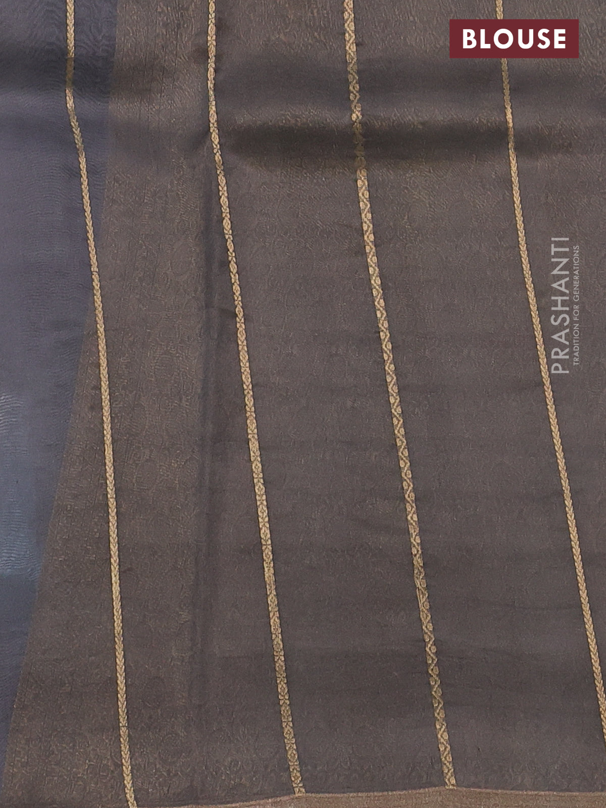 Banarasi organza silk saree grey and pastel blue with allover silver & gold zari weaves and zari woven piping boder