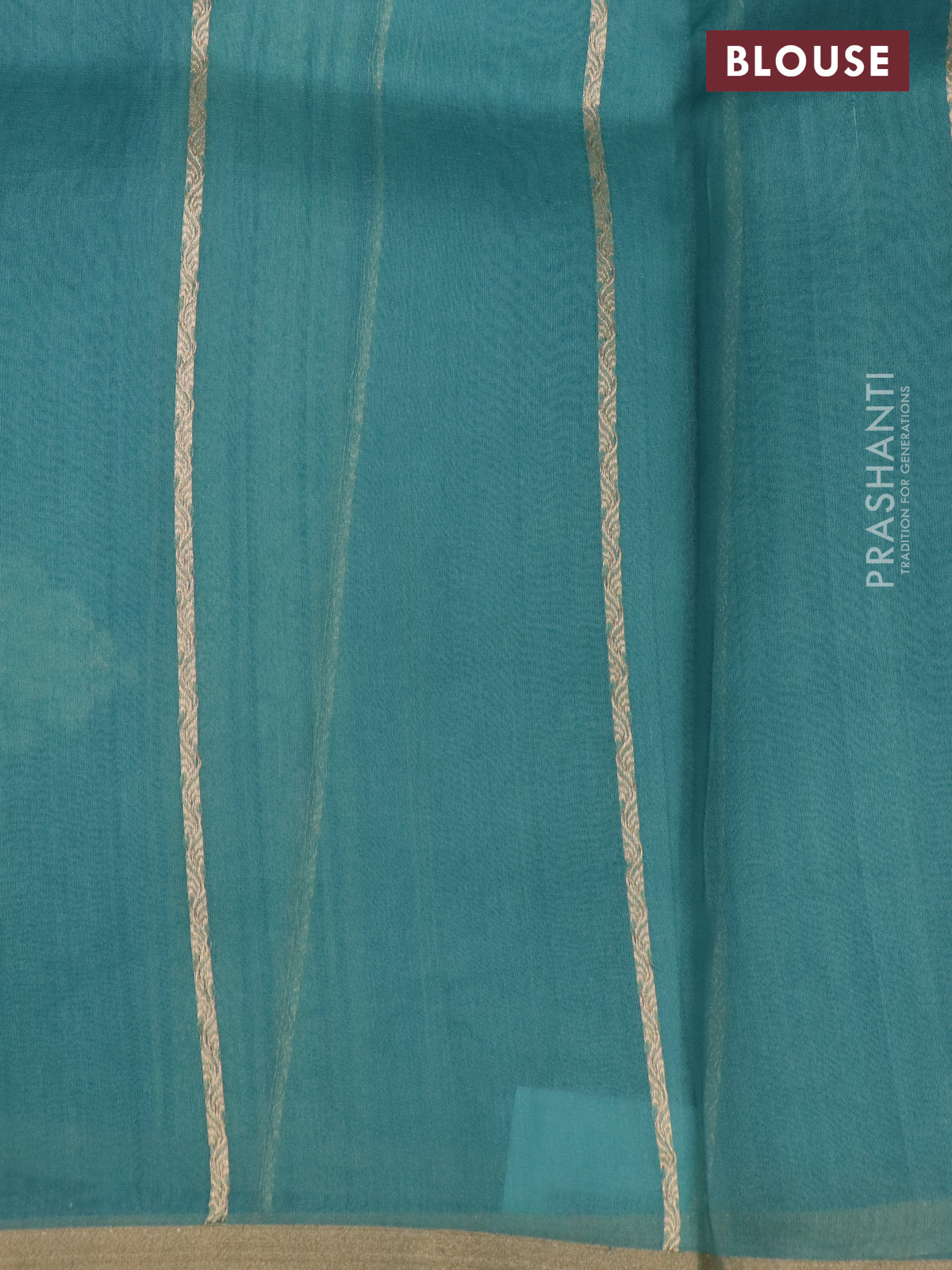 Banarasi organza silk saree pastel blue with silver & gold zari weaves and zari woven piping border