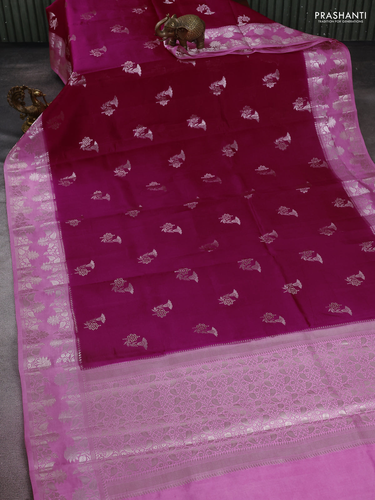 Banarasi poona silk saree dark pink and light pink with zari woven buttas and zari woven border