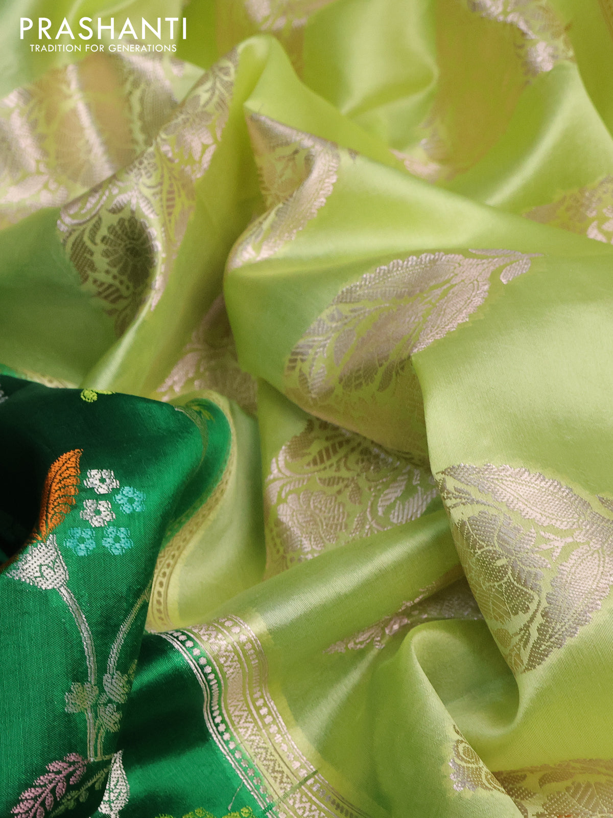 Banarasi poona silk saree green and pista green with allover mina weaves and zari woven border