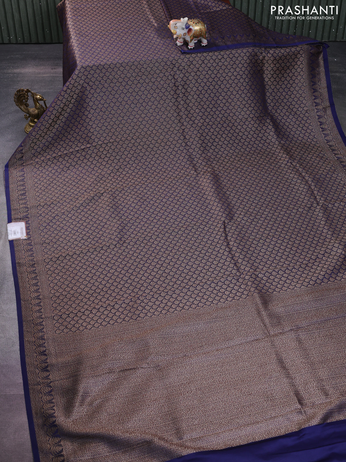 Banarasi semi crepe saree blue with allover thread & zari woven brocade weaves and woven border