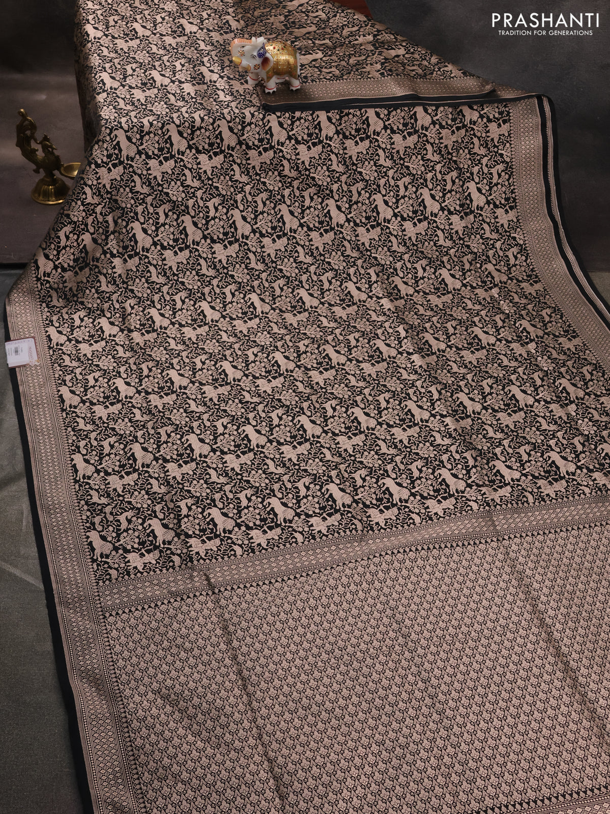 Banarasi semi katan saree black with allover vanasingaram zari weaves and woven border