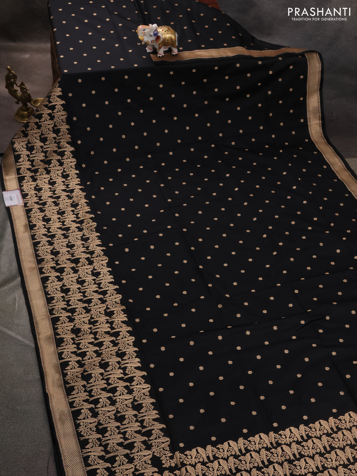 Banarasi semi katan saree black with zari woven buttas and zari woven border