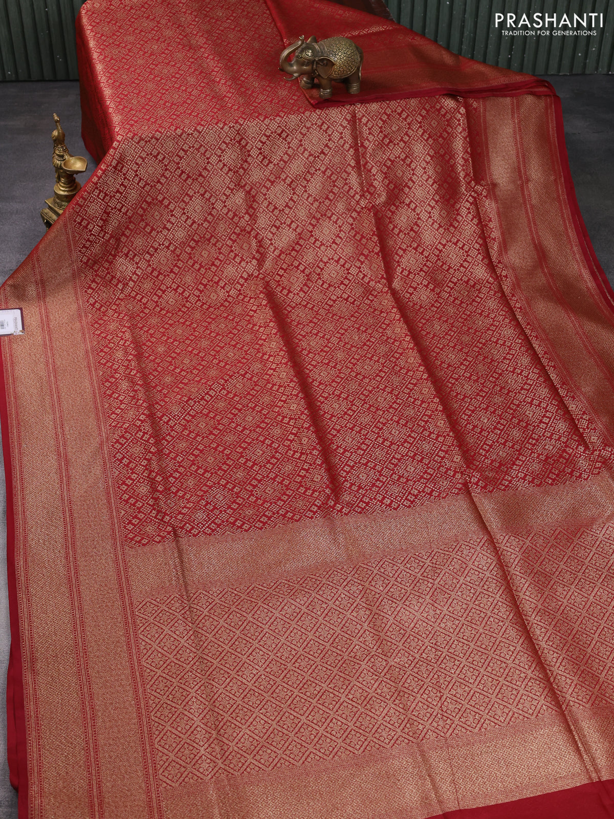Banarasi semi katan saree maroon with allover thread & zari weaves and woven border