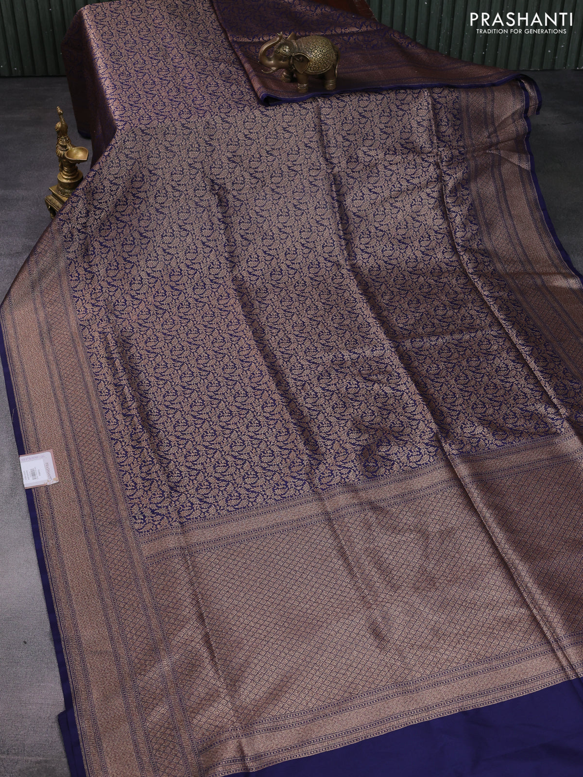 Banarasi semi katan saree navy blue with allover thread & zari brocade weaves and woven border