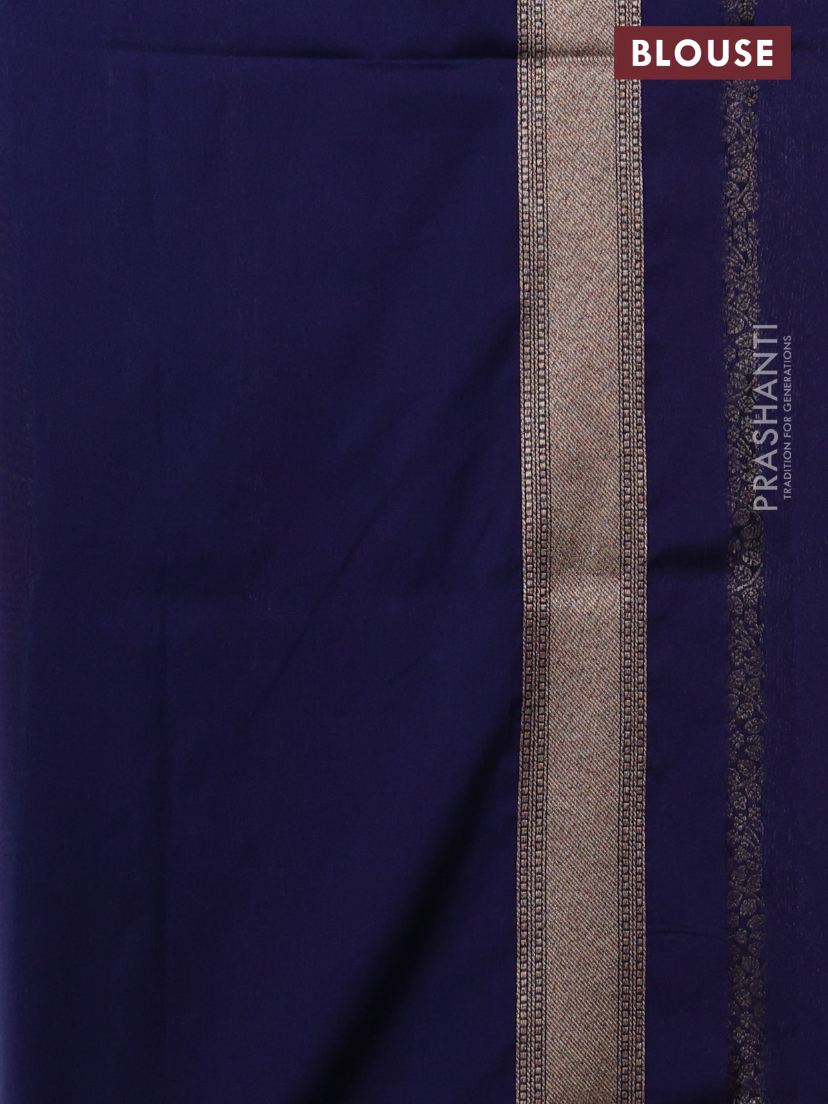 Banarasi semi katan saree navy blue with allover thread & zari brocade weaves and woven border