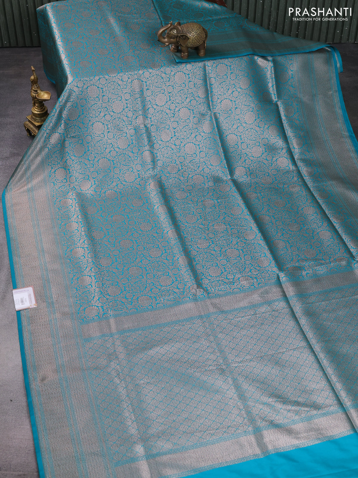 Banarasi semi katan saree teal blue with allover thread & zari woven brocade weaves and woven border