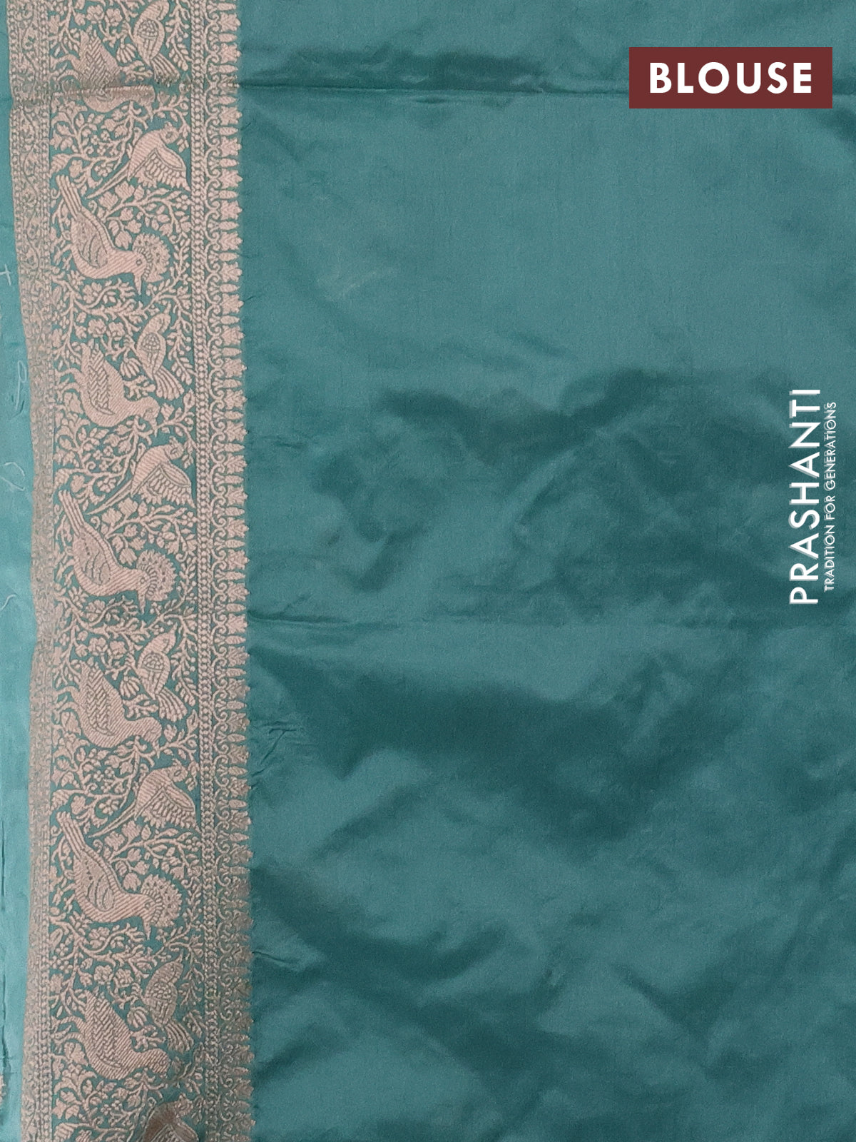 Banarasi semi katan saree teal blue with zari woven buttas and zari woven border