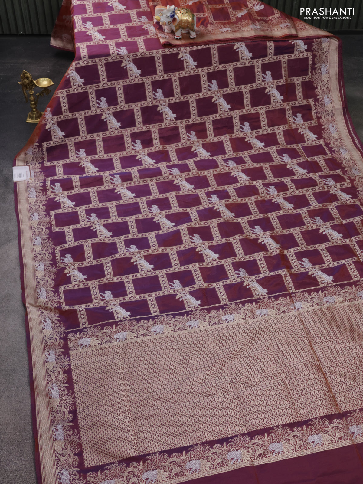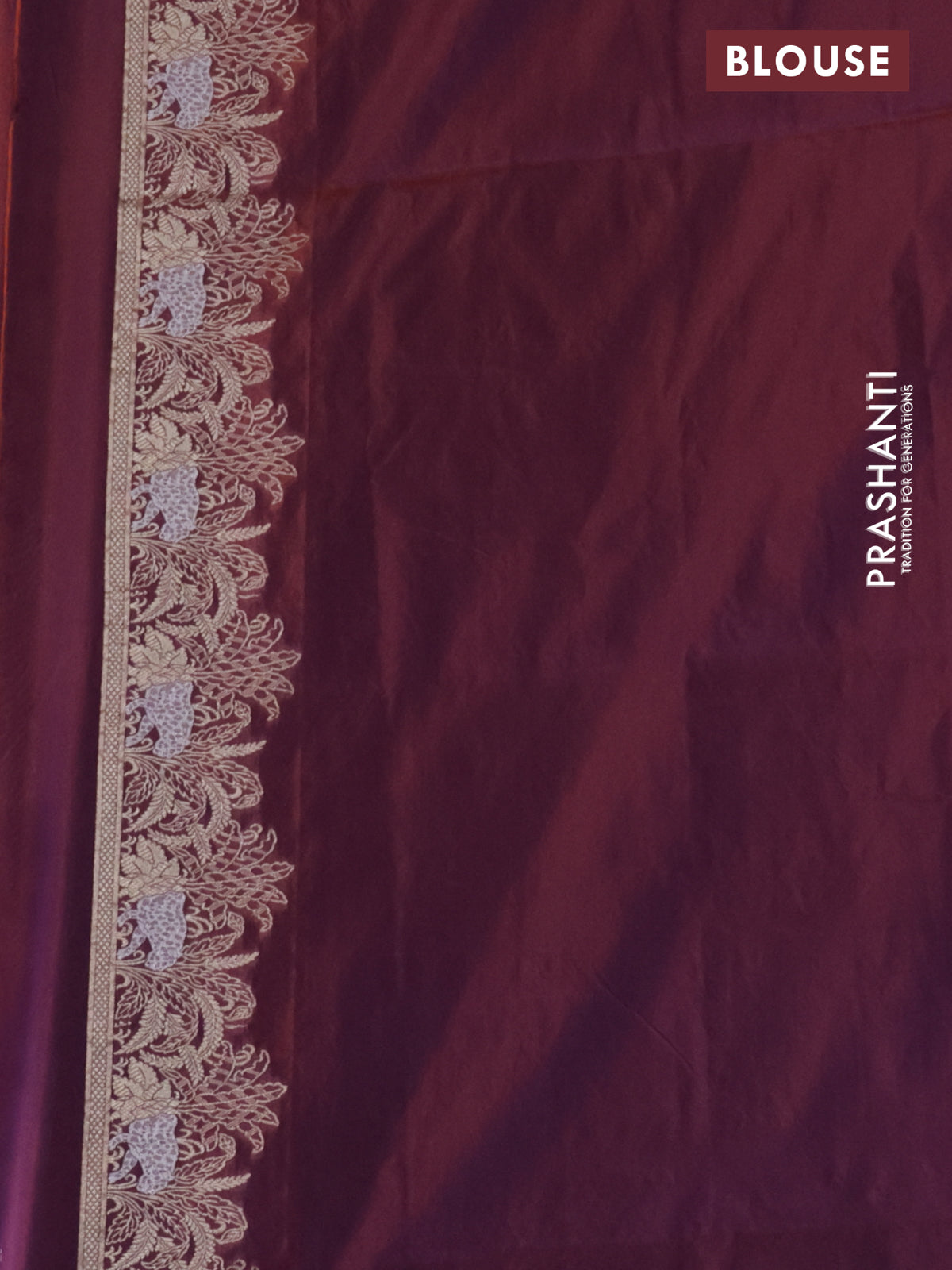 Banarasi semi katan silk saree dual shade of maroonish purple with allover silver & gold zari weaves and zari woven border