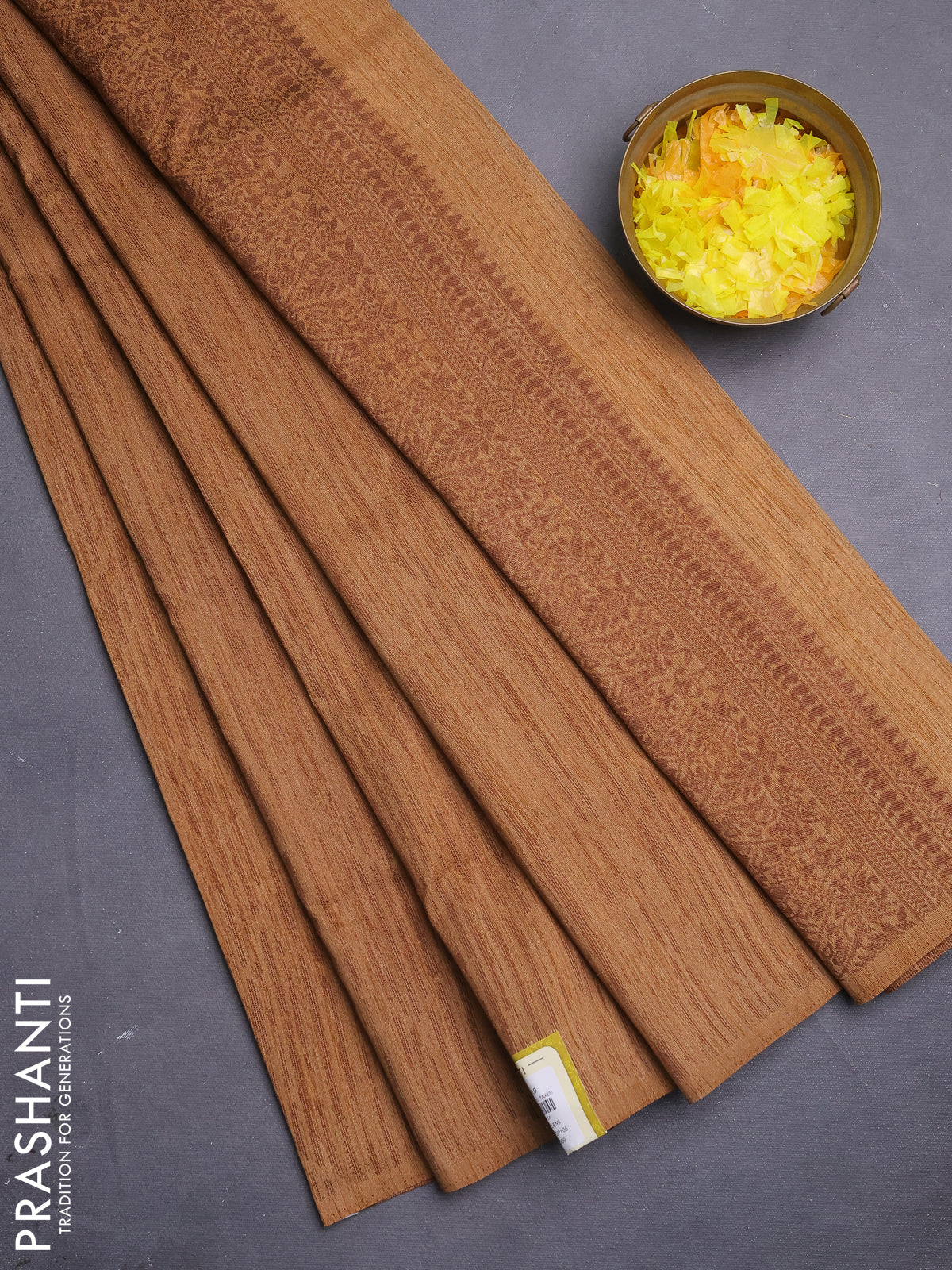 Banarasi semi matka saree dark sandal with allover thread weaves in borderless style