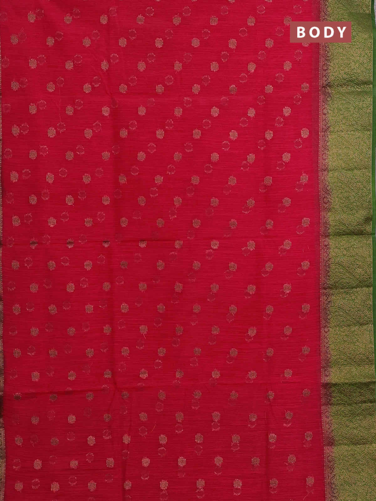 Banarasi semi matka saree pink and mehendi green with thread & zari woven buttas and banarastyle border