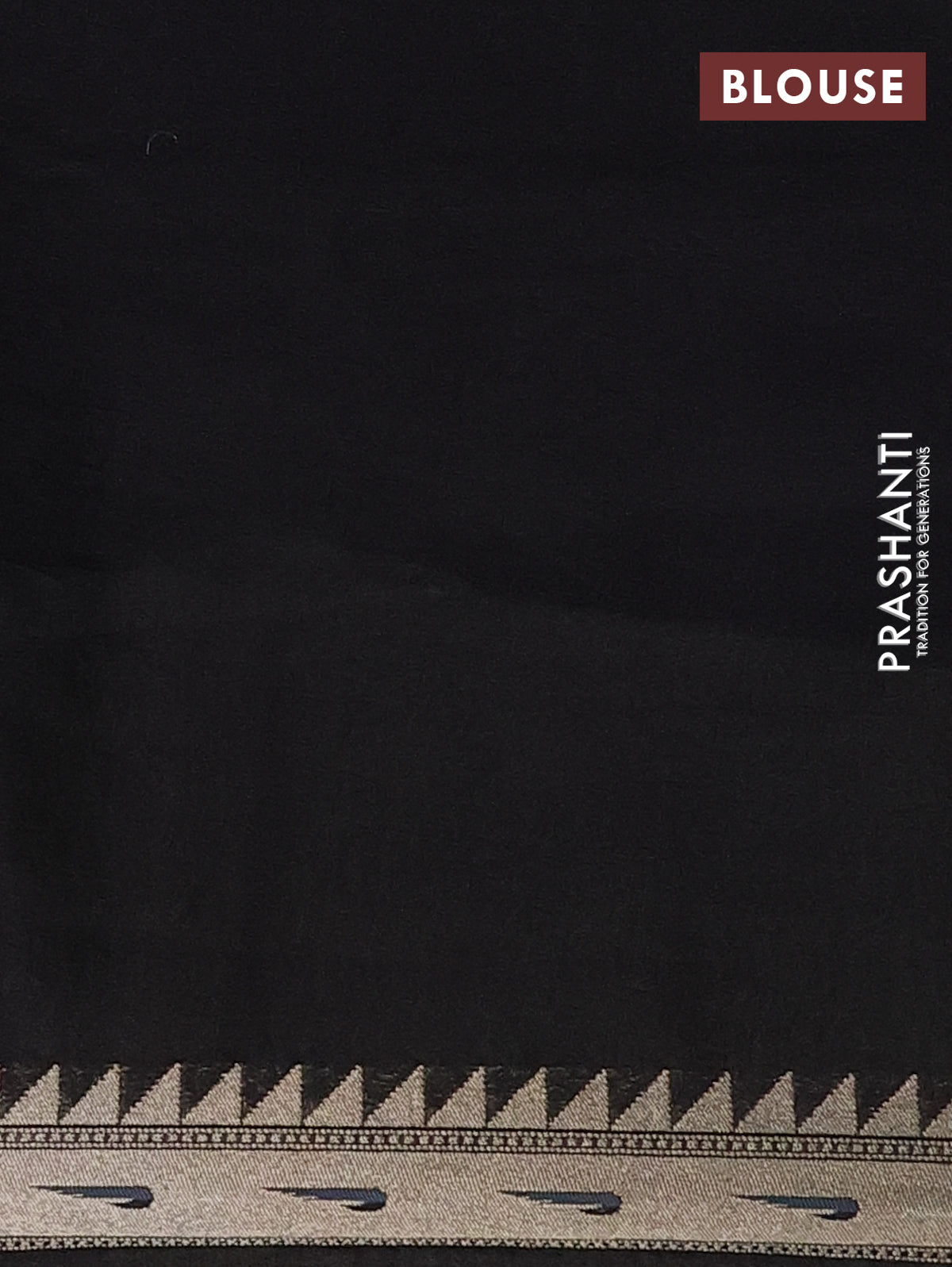 Banarasi semi raw silk saree black with allover zari woven brocade weaves and floral design paithani border