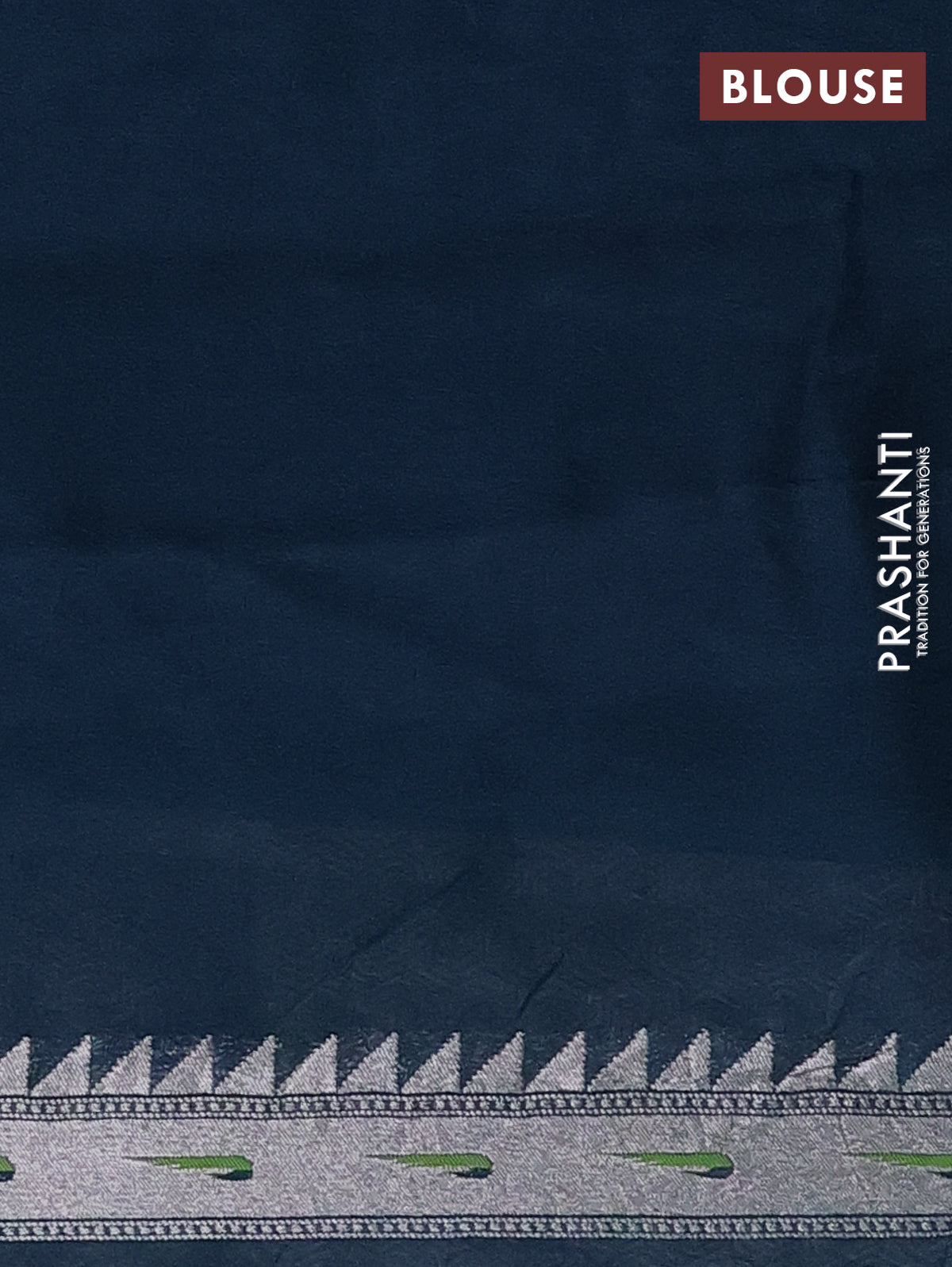 Banarasi semi raw silk saree peacock blue with allover silver woven brocade weaves and floral design paithani border