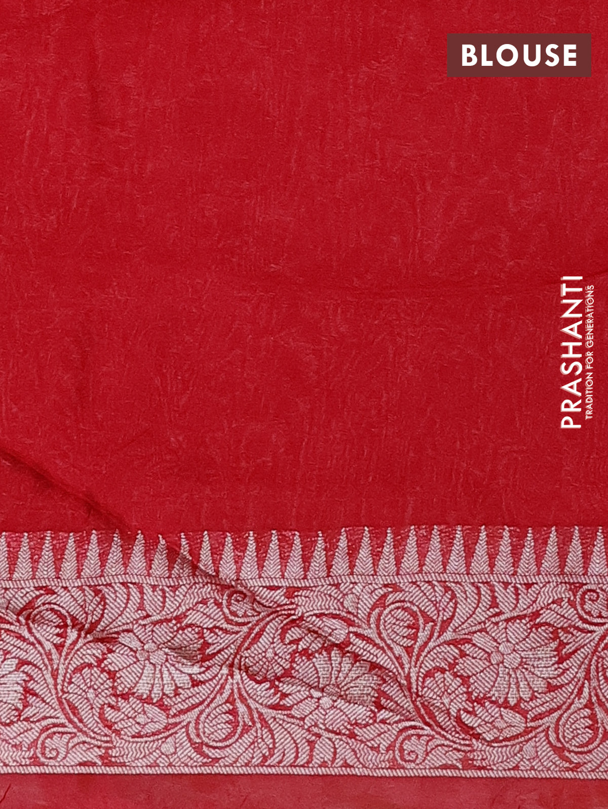 Banarasi semi raw silk saree red with allover silver zari woven paithani weaves and woven border