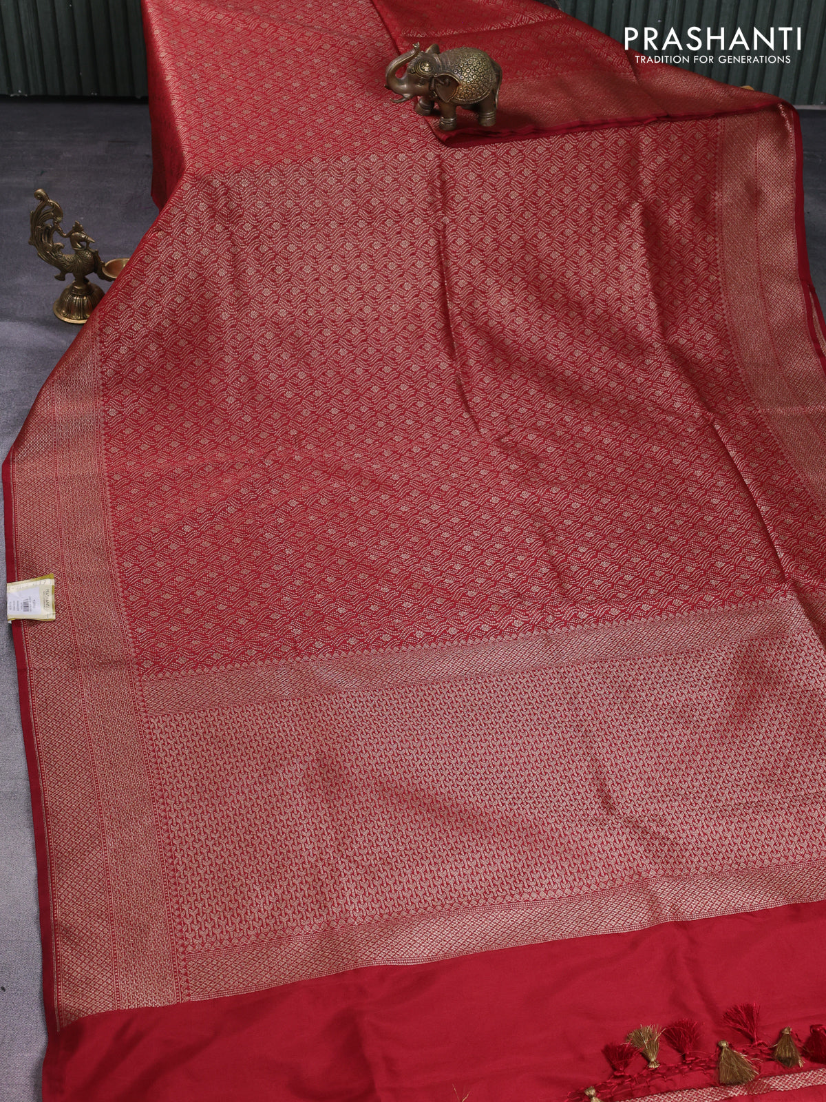 Banarasi semi silk saree maroon with allover thread & zari weaves and woven border