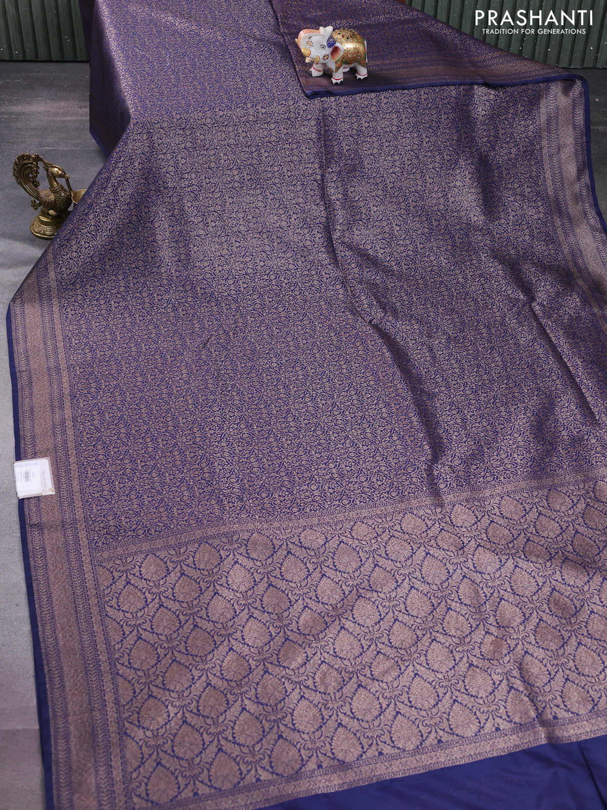 Banarasi semi silk saree navy blue with allover thread & zari weaves and woven border