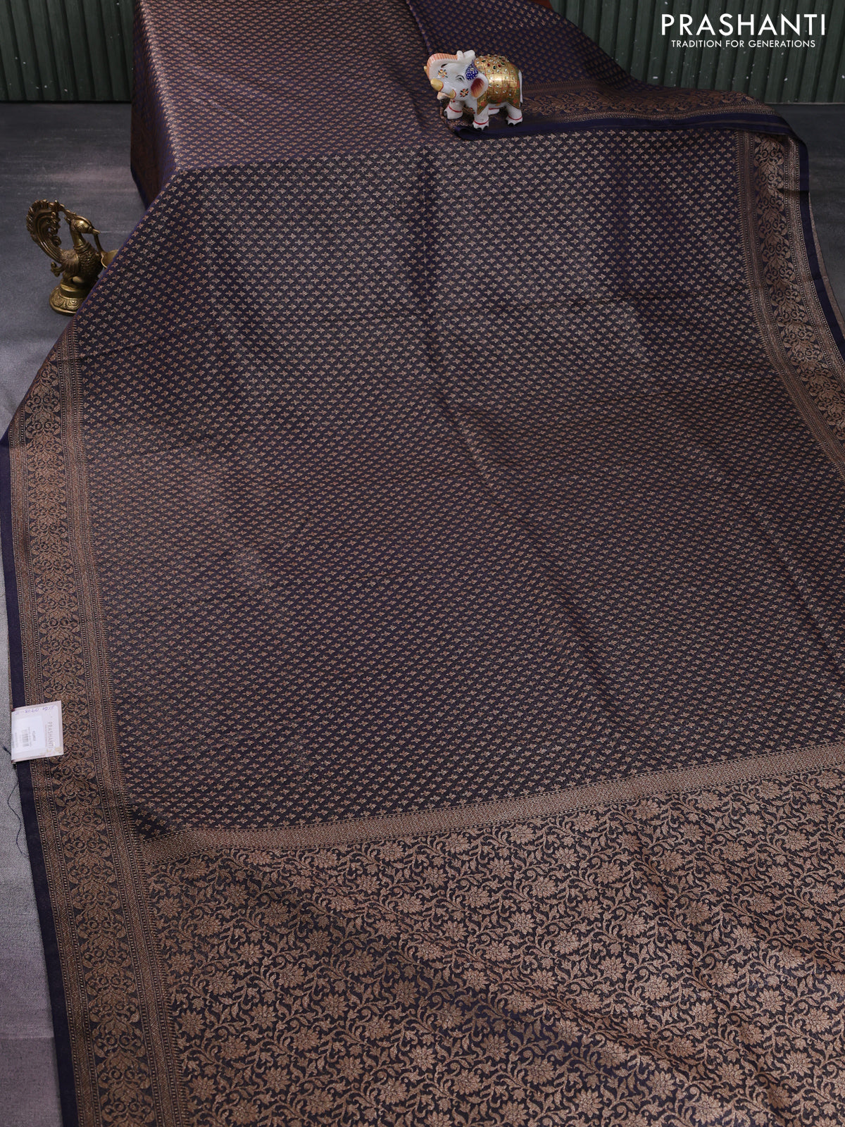 Banarasi semi silk saree navy blue with allover thread & zari woven butta weaves and woven border