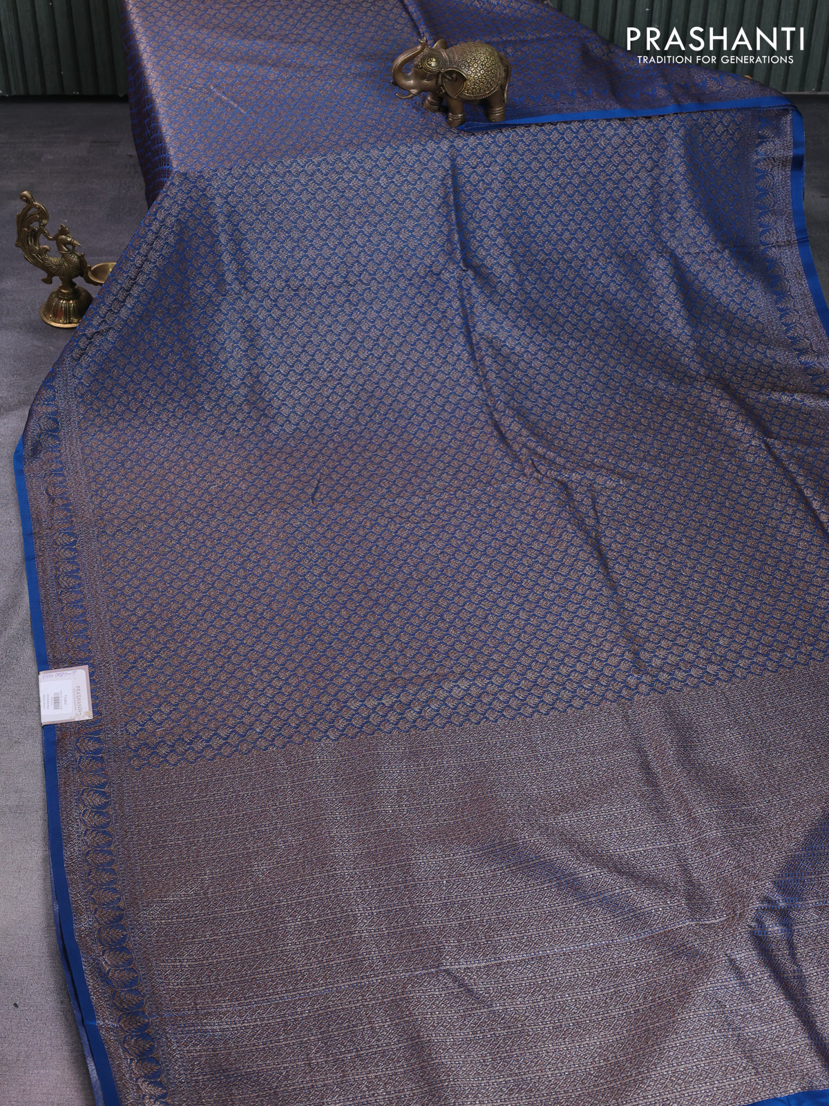 Banarasi semi silk saree peacock blue with allover thread & zari weaves and woven border