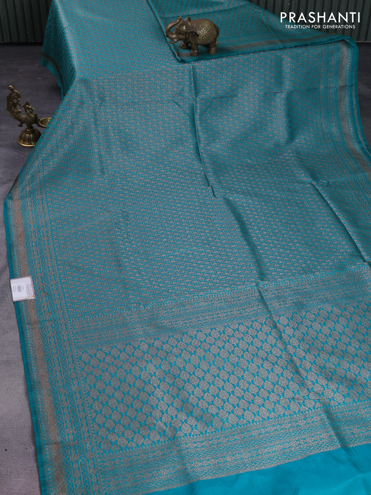Banarasi semi silk saree teal blue with allover thread & zari weaves and woven border