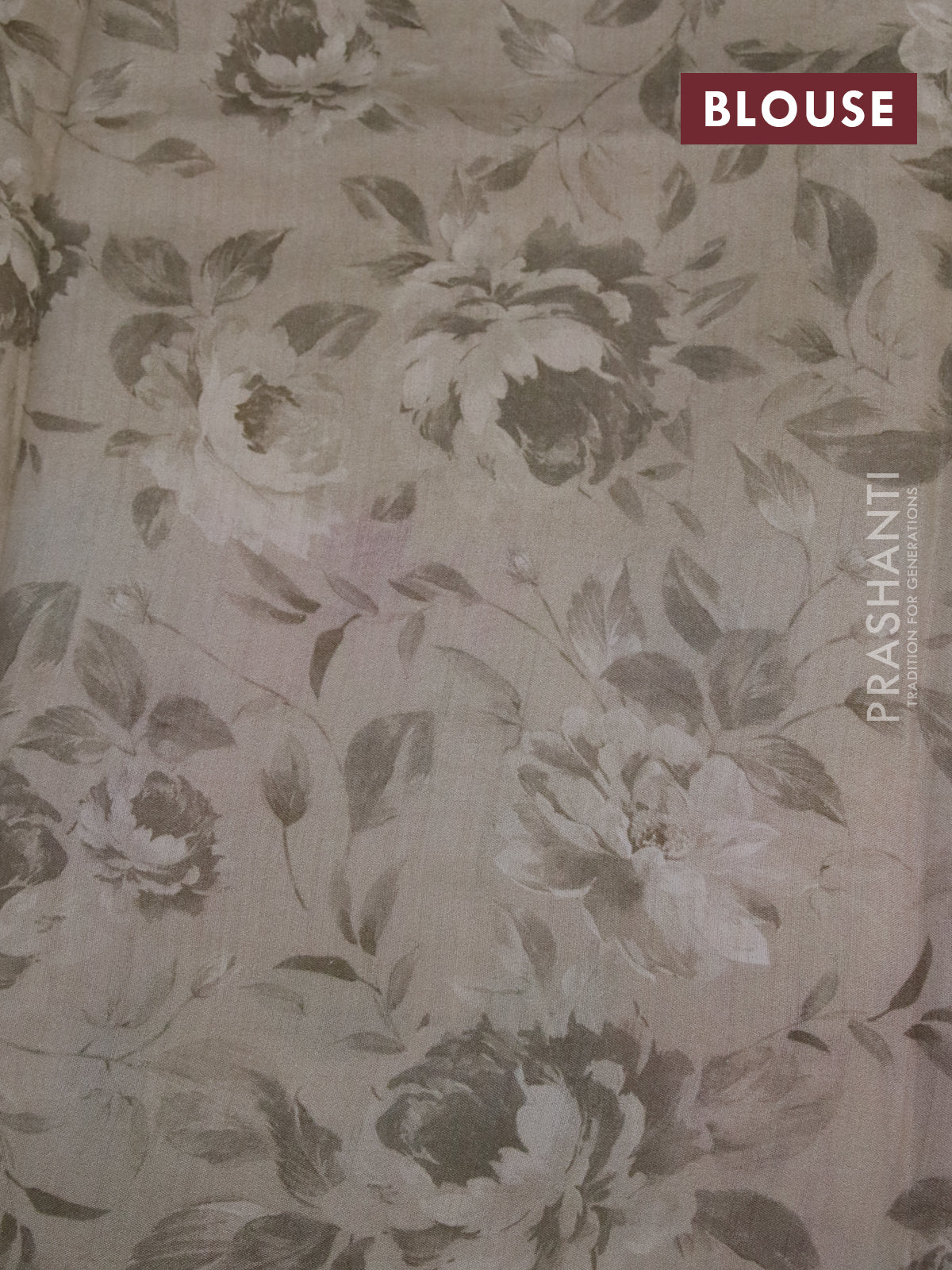 Banarasi silk saree beige with allover zari woven brocade weaves and floral digital printed border