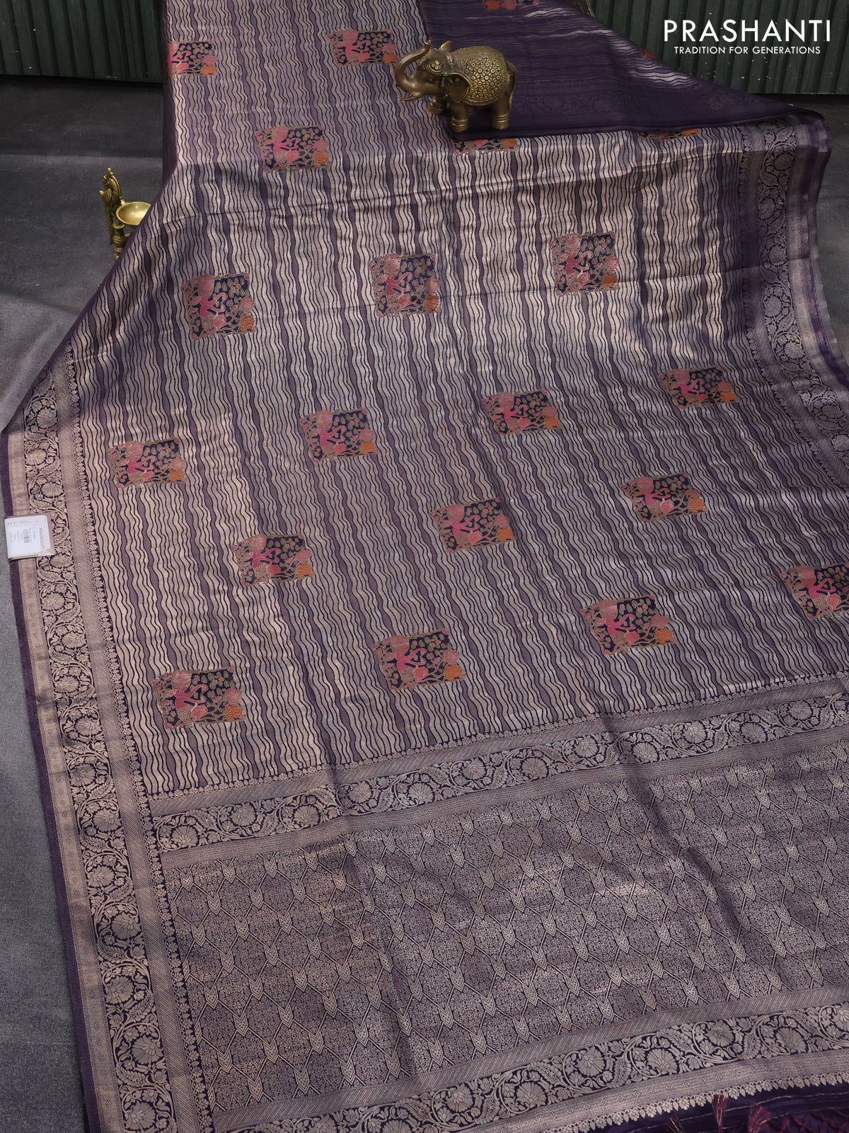 Banarasi silk saree deep violet with allover zari woven brocade weaves and zari woven border