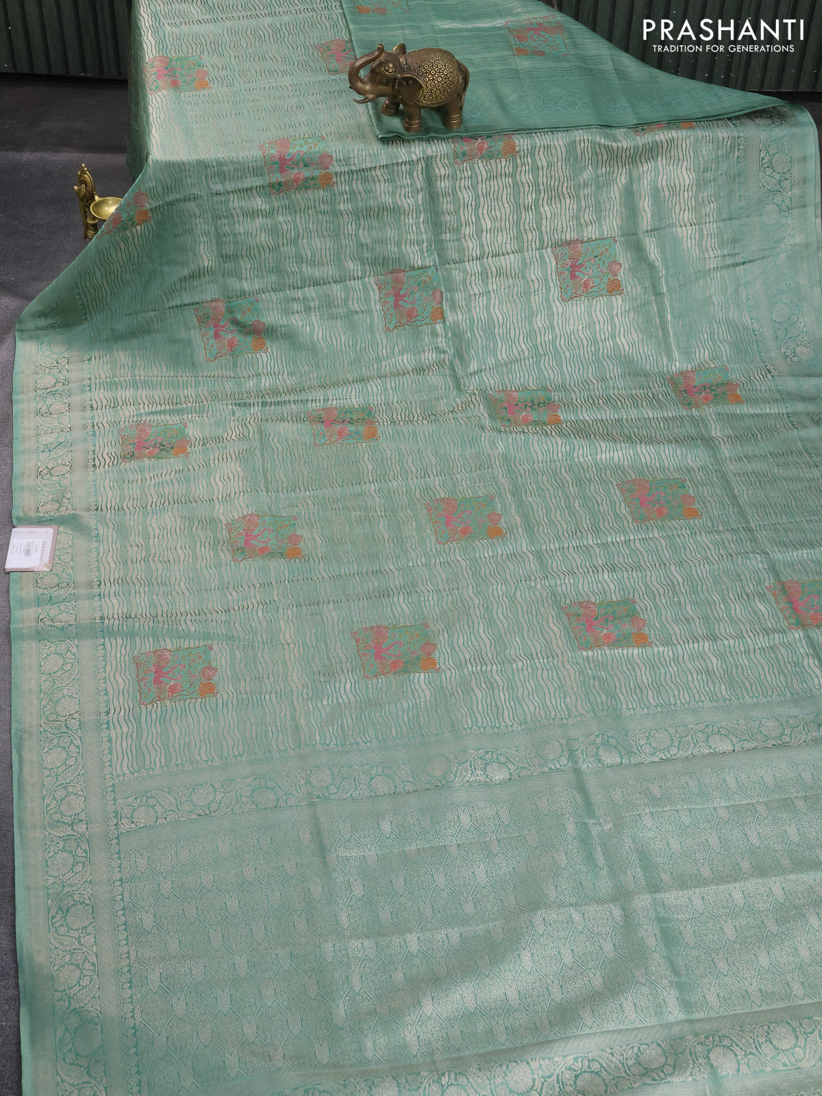 Banarasi silk saree pastel green with allover zari woven brocade weaves and zari woven border