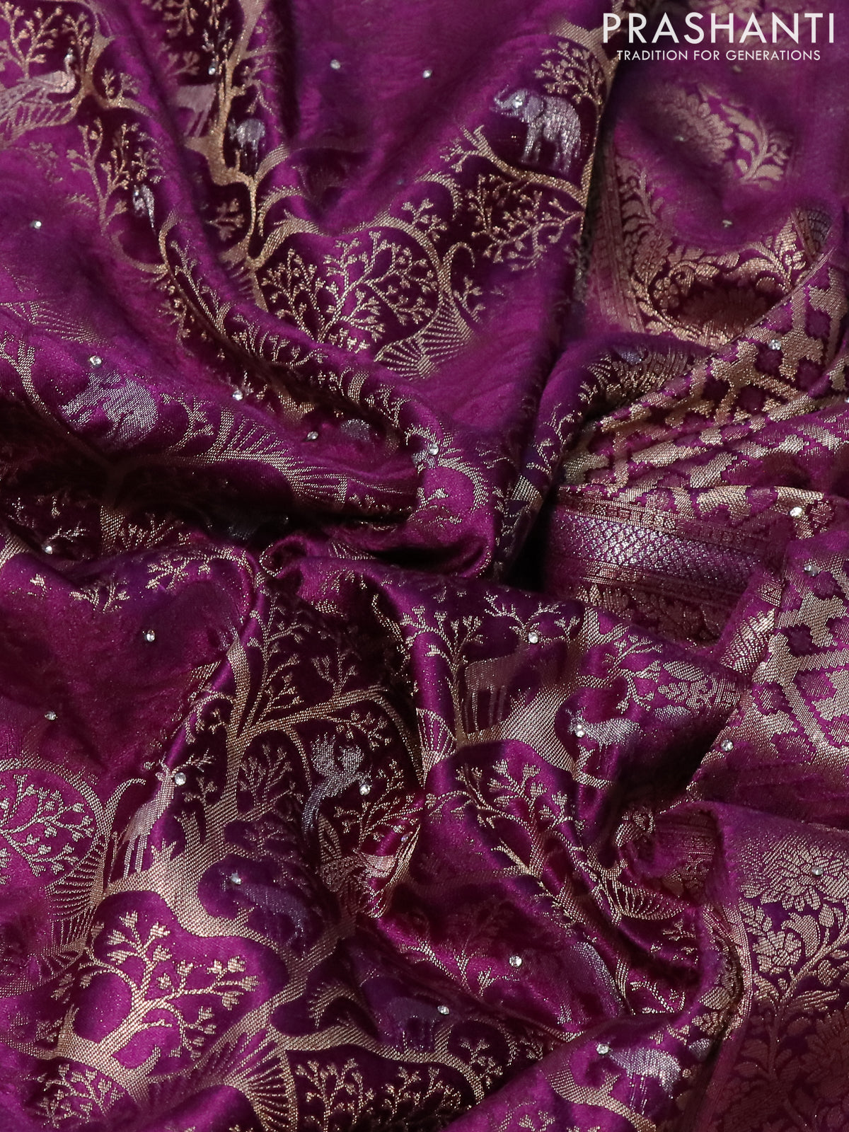 Banarasi silk saree purple with allover zari woven brocade weaves and embroidery mirror work border