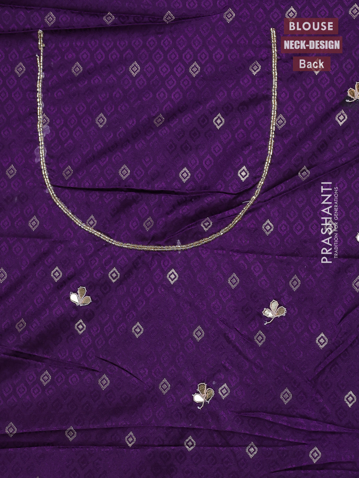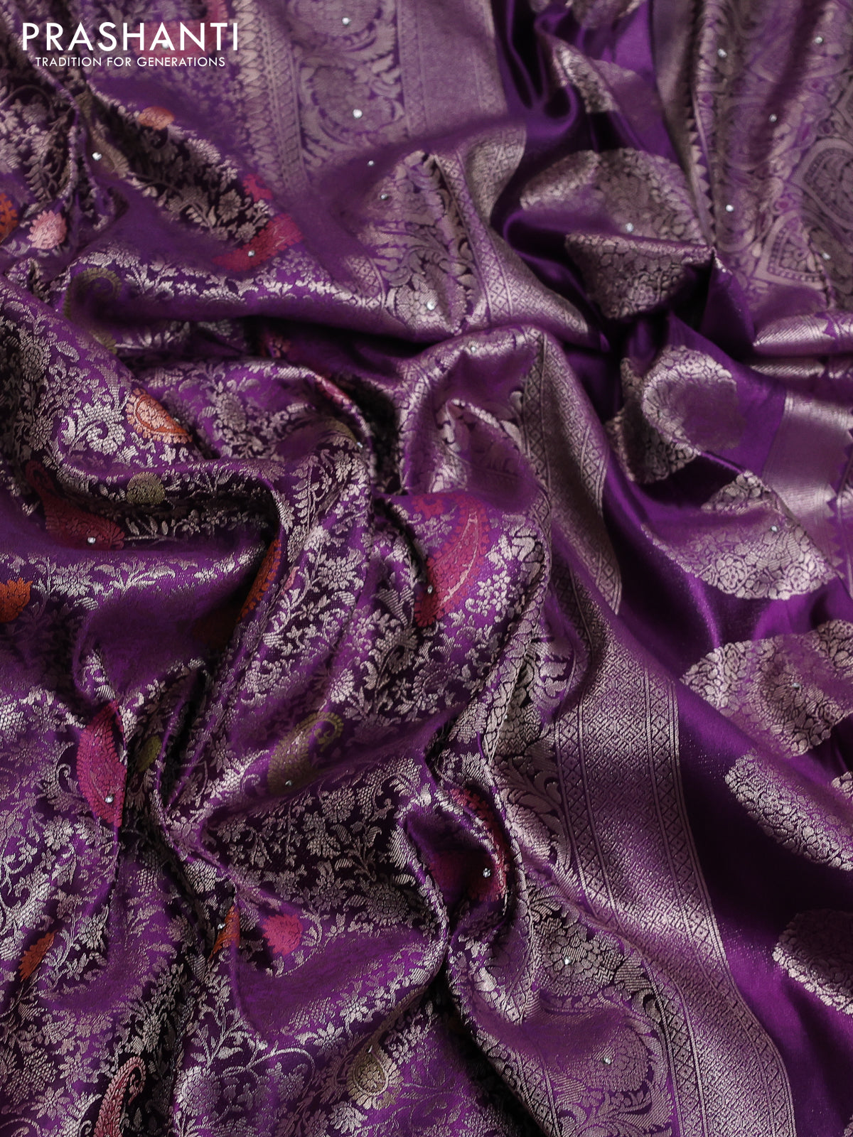 Banarasi silk saree violet with allover zari woven brocade weaves and zaridosi gotapatti work border