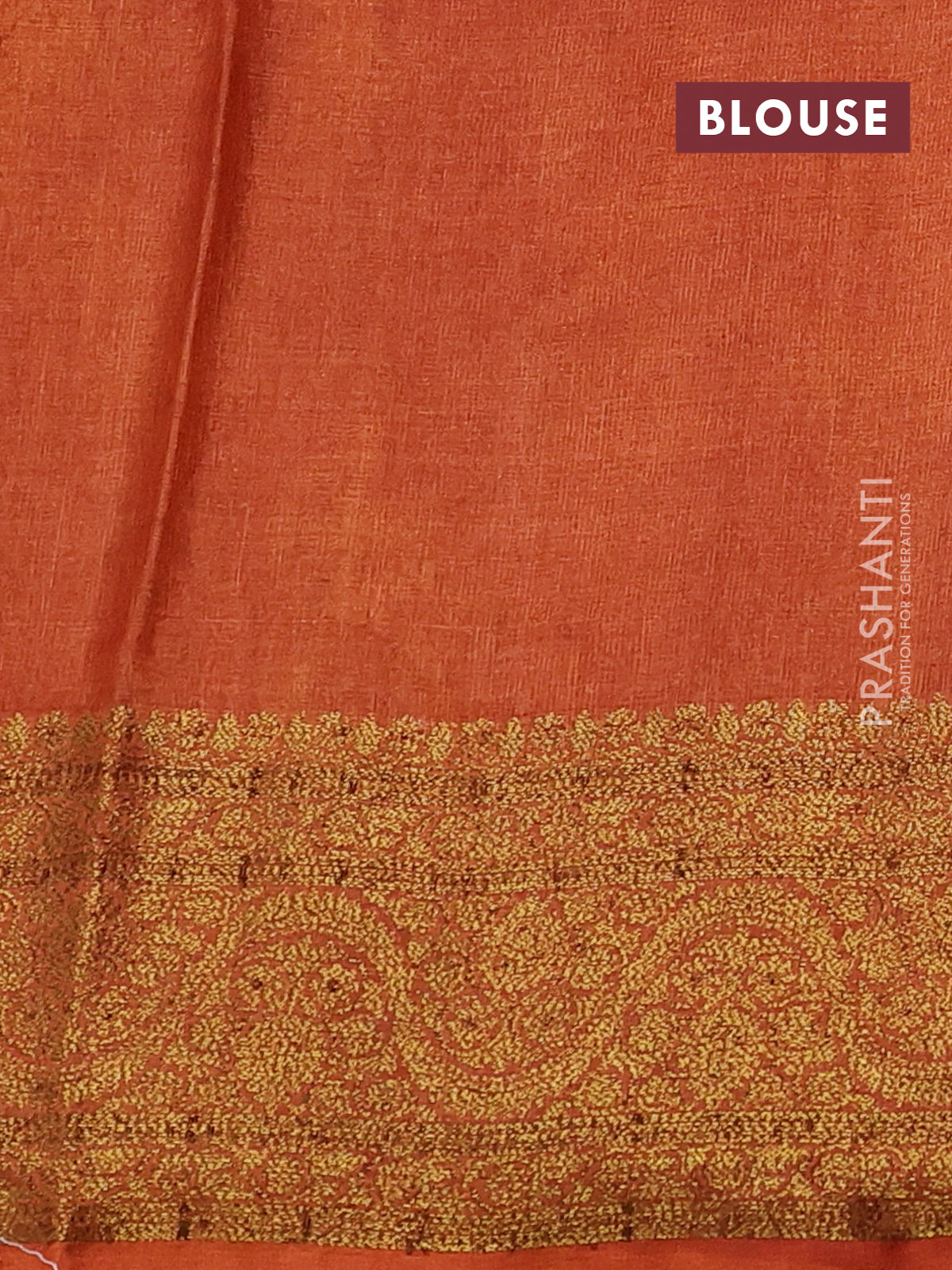 Banarasi tussar silk saree coffee brown and orange with thread & zari woven floral buttas and woven border