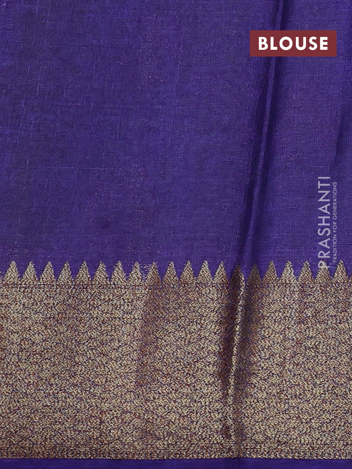 Banarasi tussar silk saree mehendi green and blue with thread & zari woven buttas and woven border