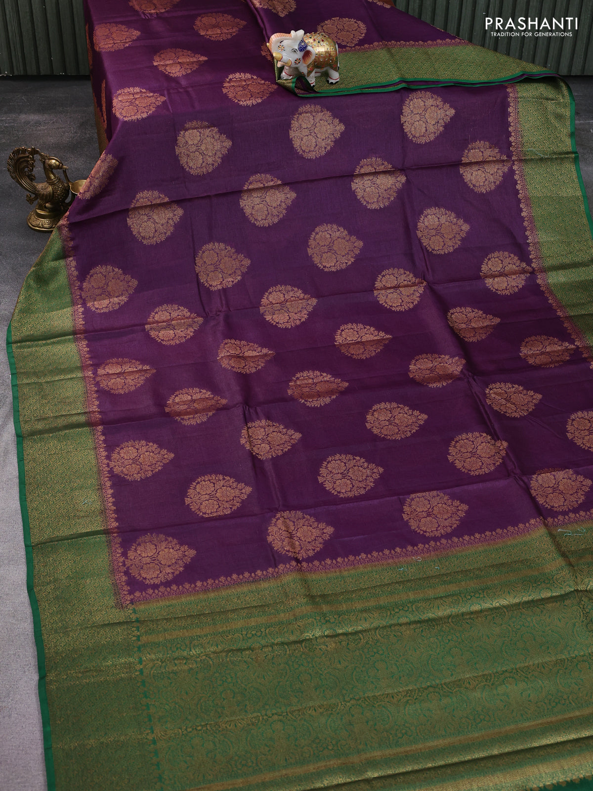 Banarasi tussar silk saree purple and green with thread & zari woven buttas and woven border