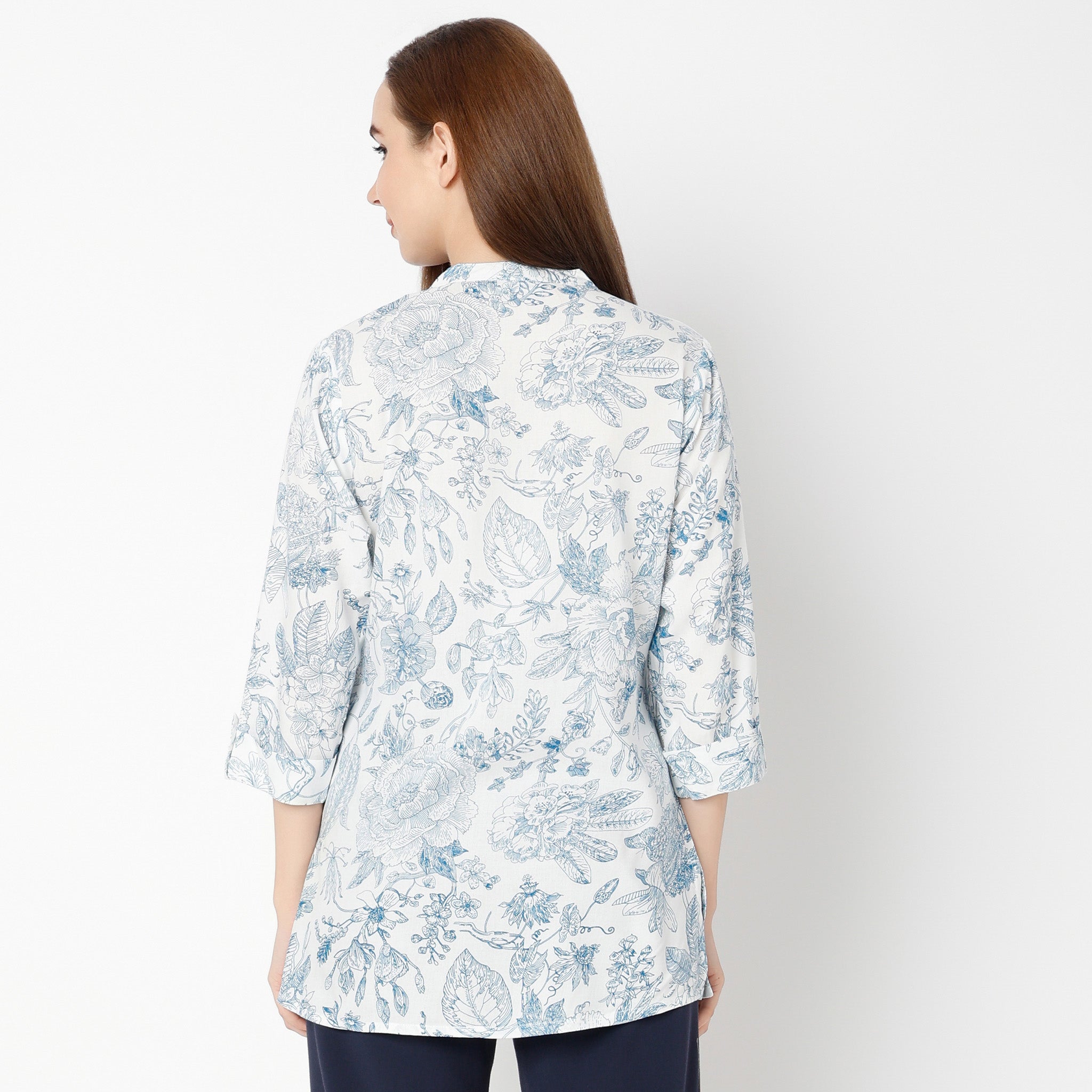 Band Neck Three-Fourth Sleeve Straight Fit Printed Short Kurti