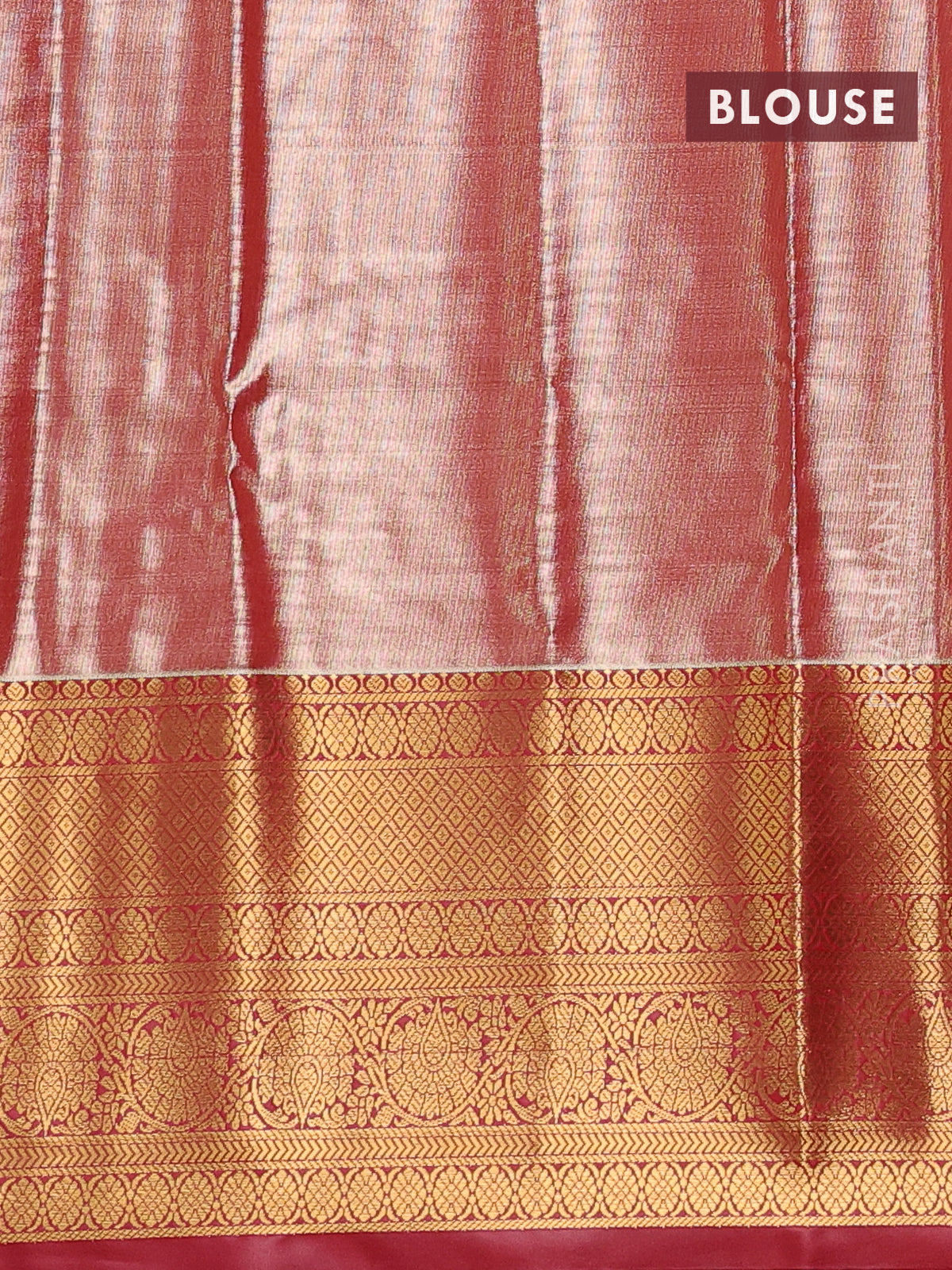 Bangalori tissue silk saree green and red with allover zari woven brocade weaves and long zari woven border