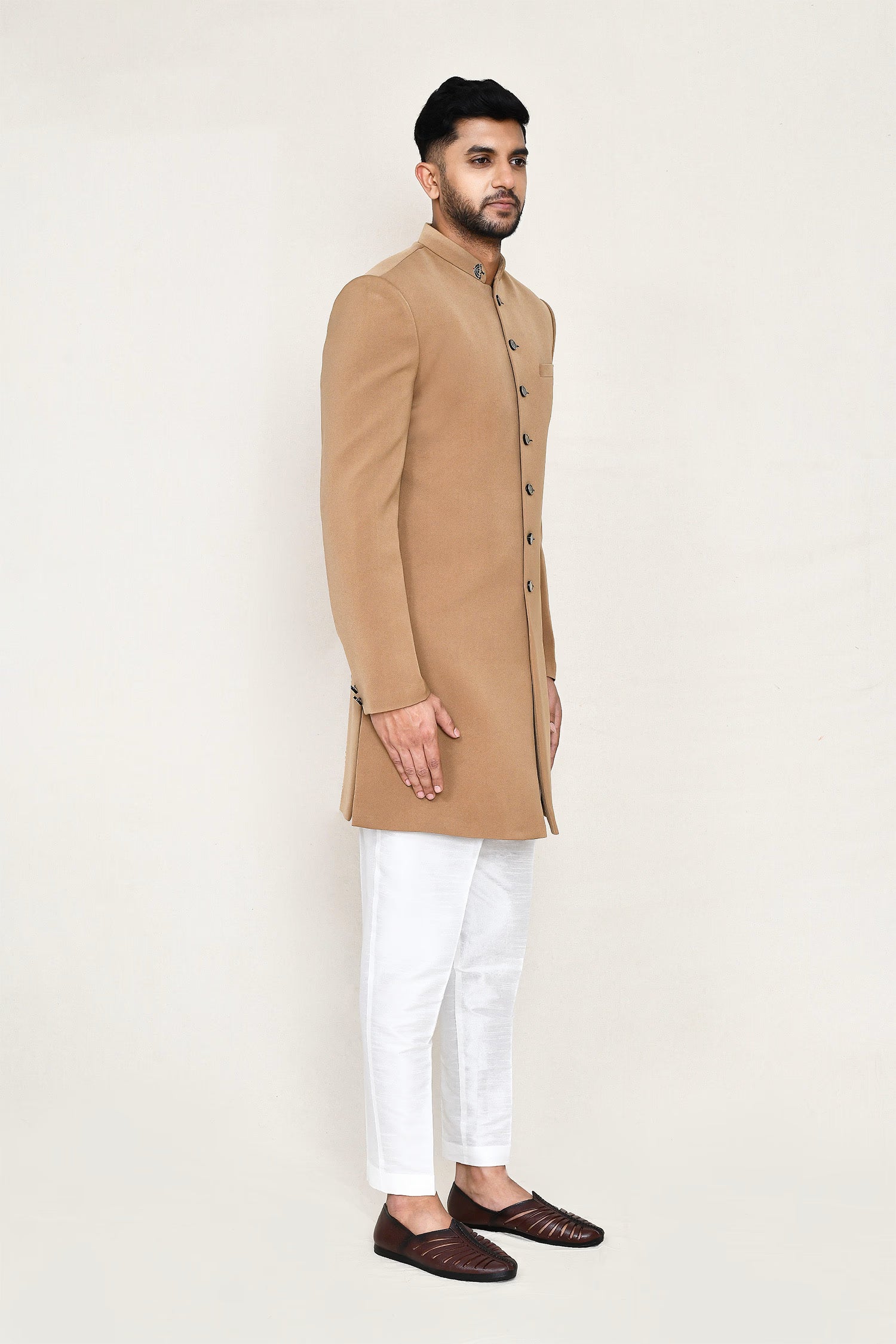 Beige Rayon Sherwani Set