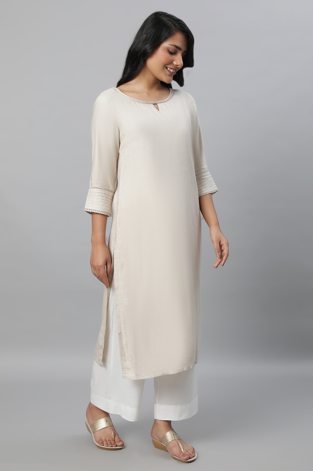 Beige Round Neck Casual Kurta