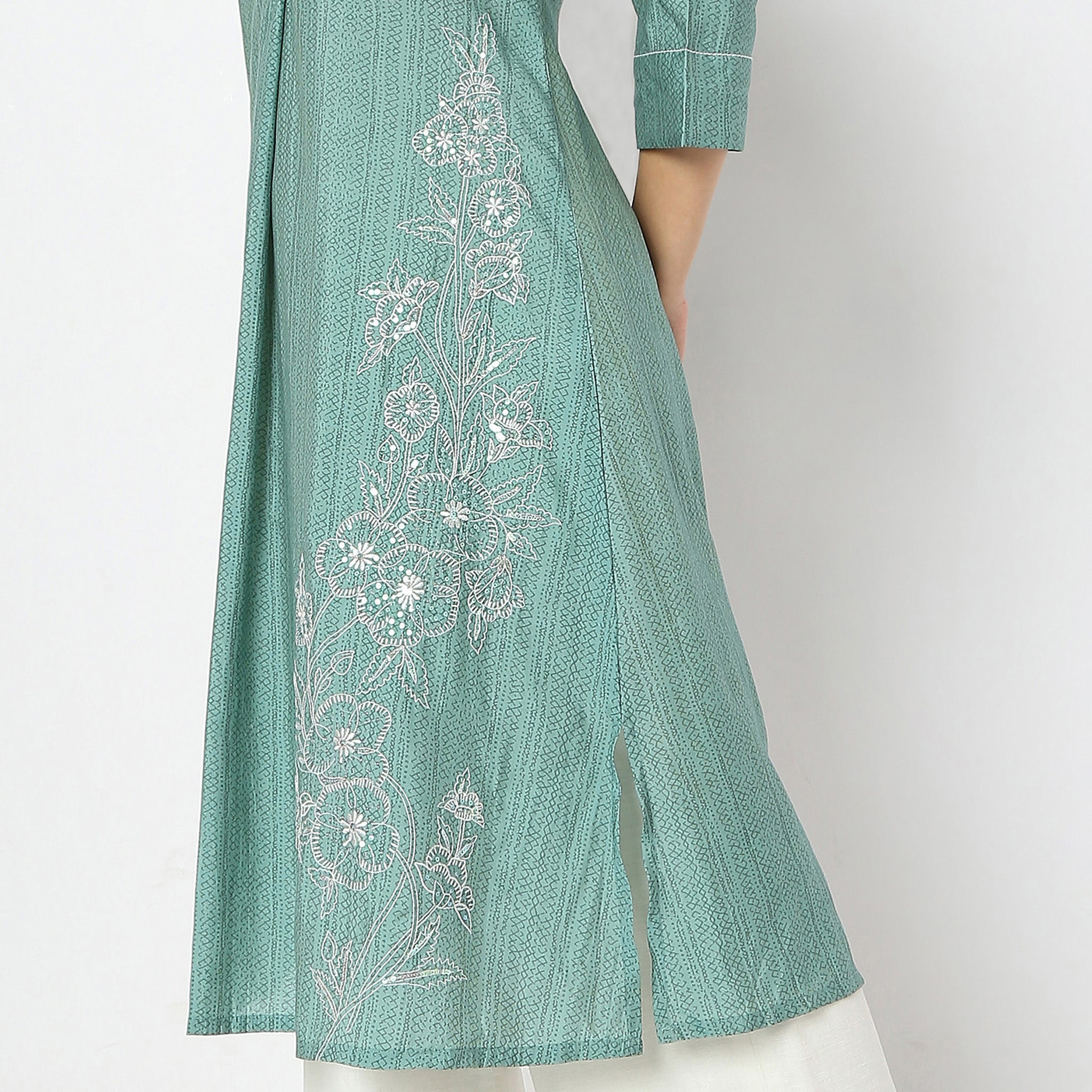 Experience the perfect blend of elegance and comfort with our Below Knee Band Collar Embroidered A-Line Kurta. Crafted from a luxurious blend of viscose and muslin, this kurta offers a soft, breathable feel that keeps you comfortable all day long. The intricate embroidery adds a touch of sophistication, making it a versatile piece for both casual outings and special occasions.