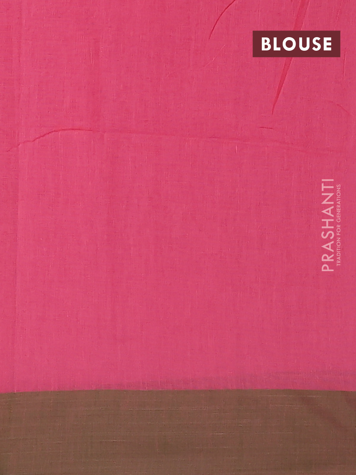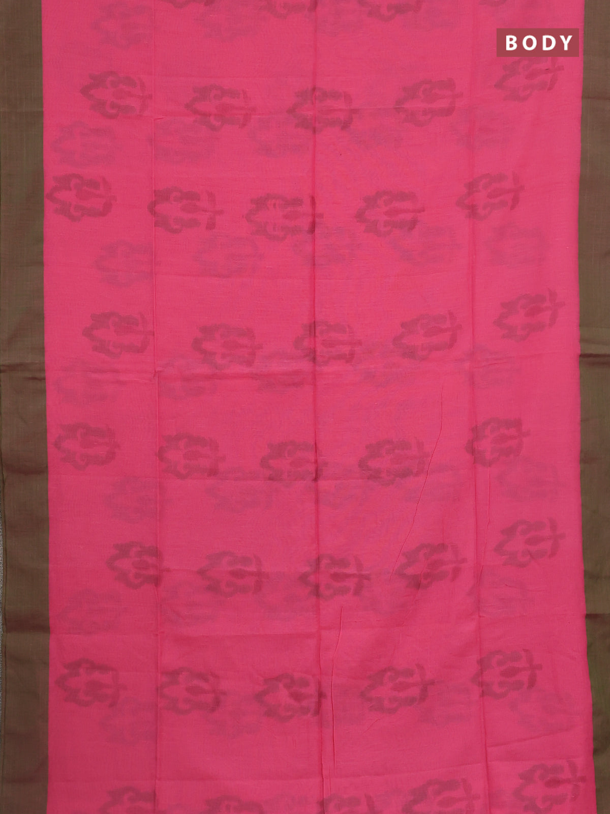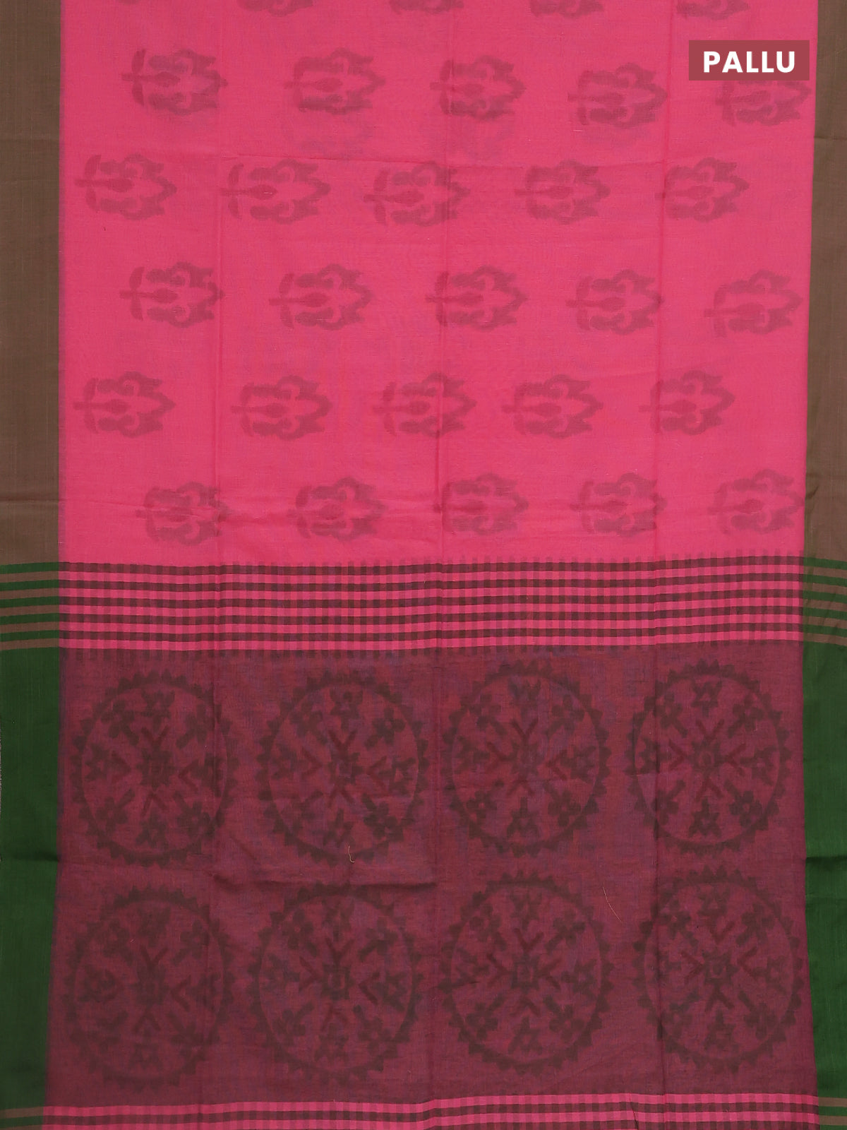 Bengal soft cotton saree candy pink and green with allover weaves and simple border