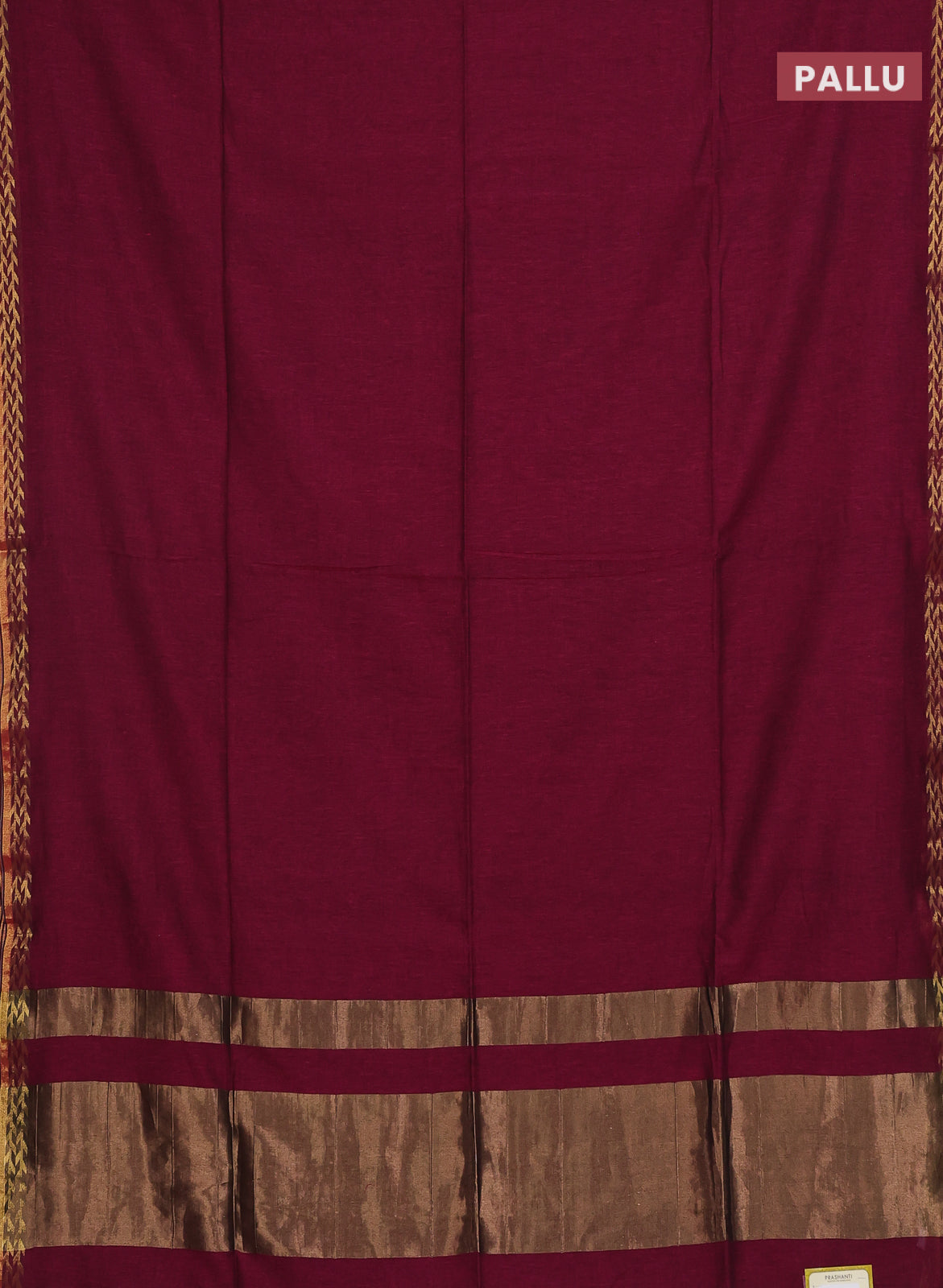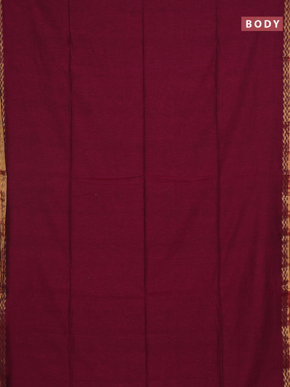Bengal soft cotton saree dark magenat pink and blue with plain body and zari woven border