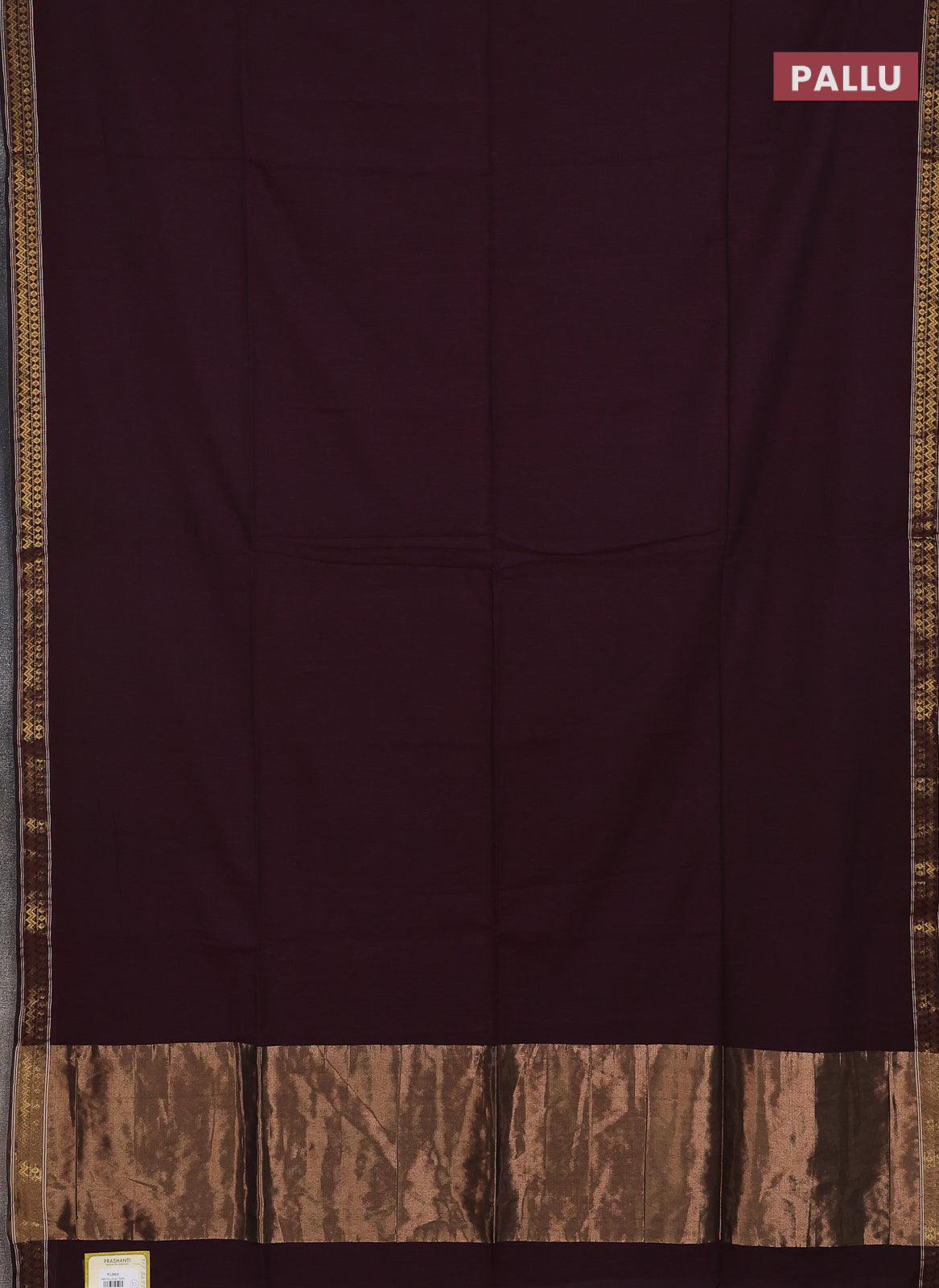 Bengal soft cotton saree deep wine shade and blue with plain body and zari woven border