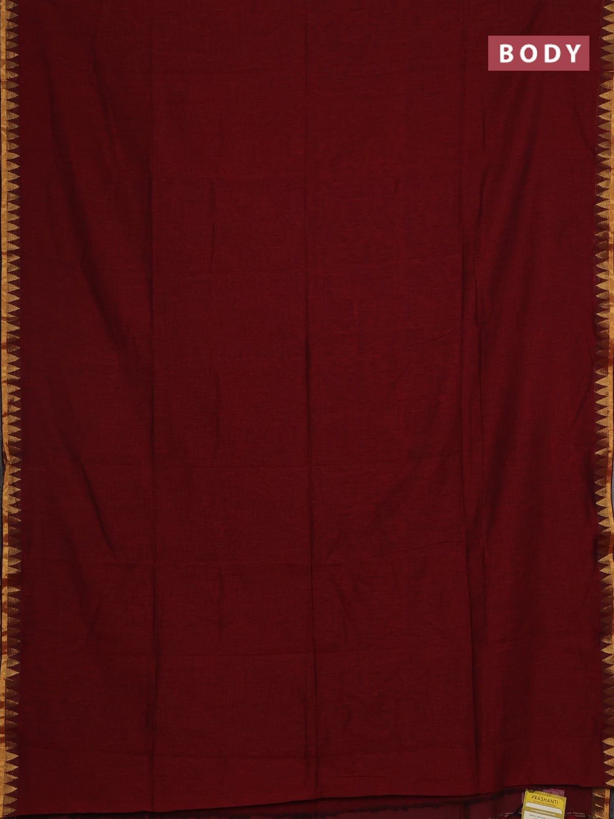 Bengal soft cotton saree maroon and blue with plain body and zari woven border