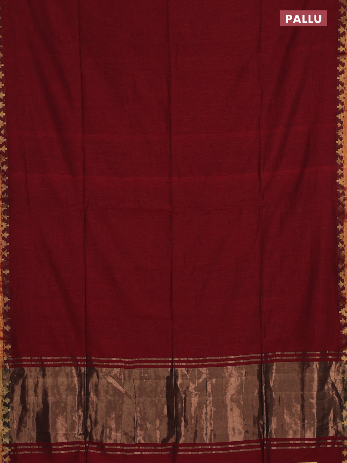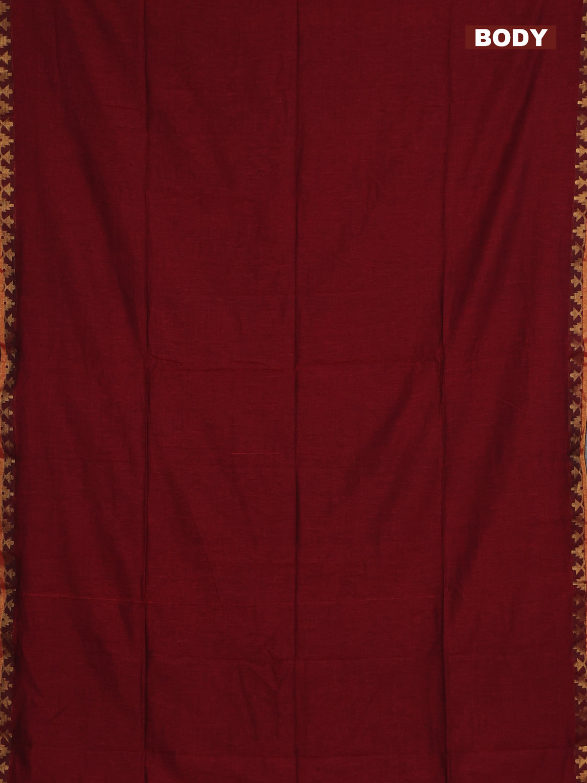 Bengal soft cotton saree maroon and blue with plain body and zari woven border