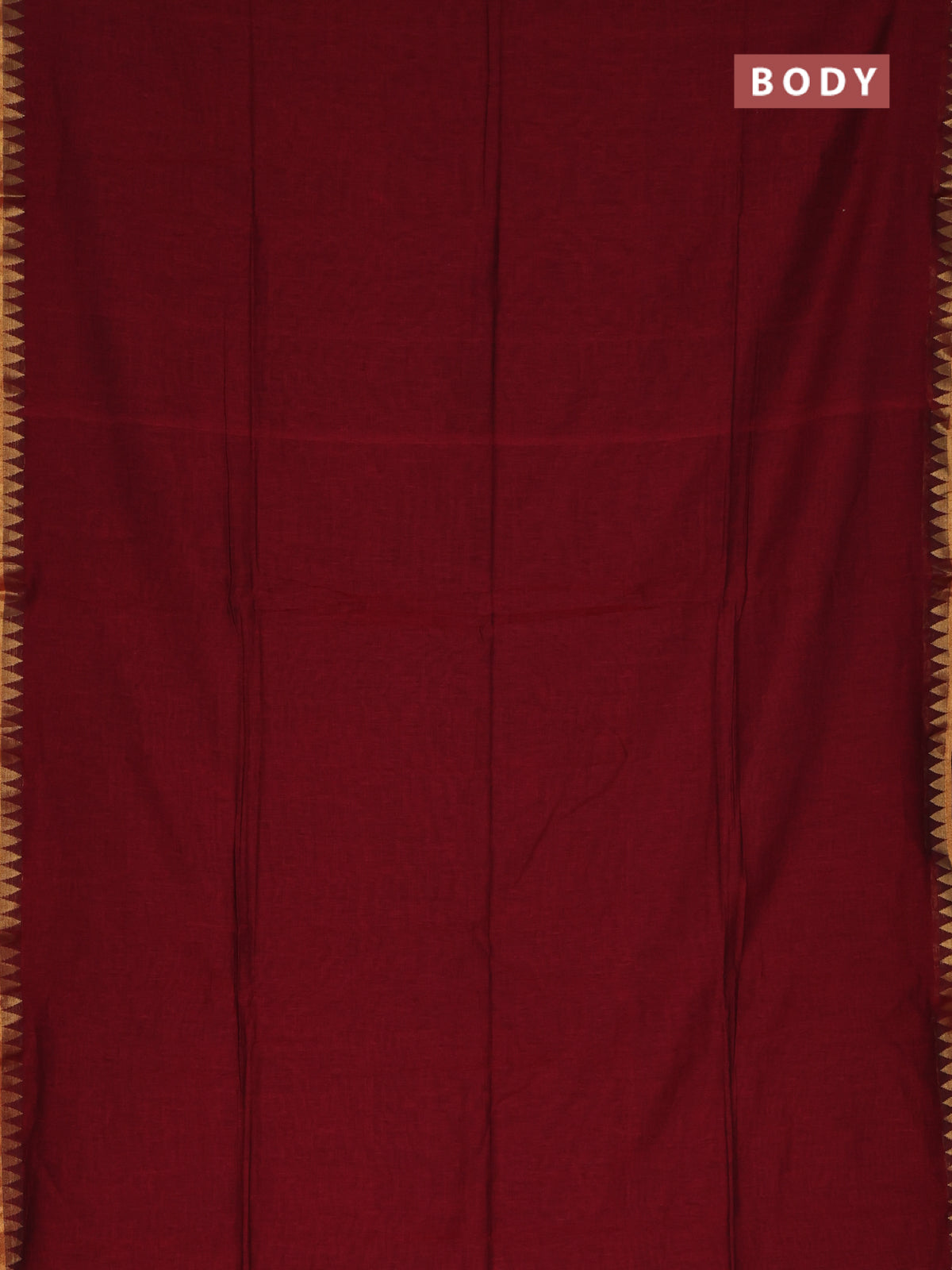 Bengal soft cotton saree maroon and green with plain body and zari woven border