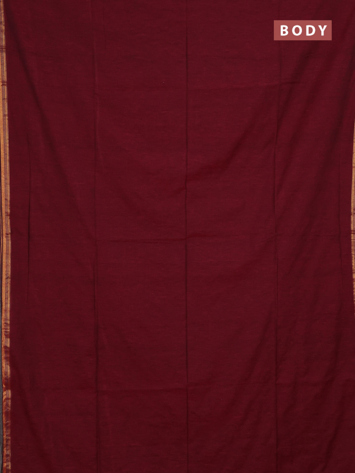 Bengal soft cotton saree maroon with plain body and zari woven border