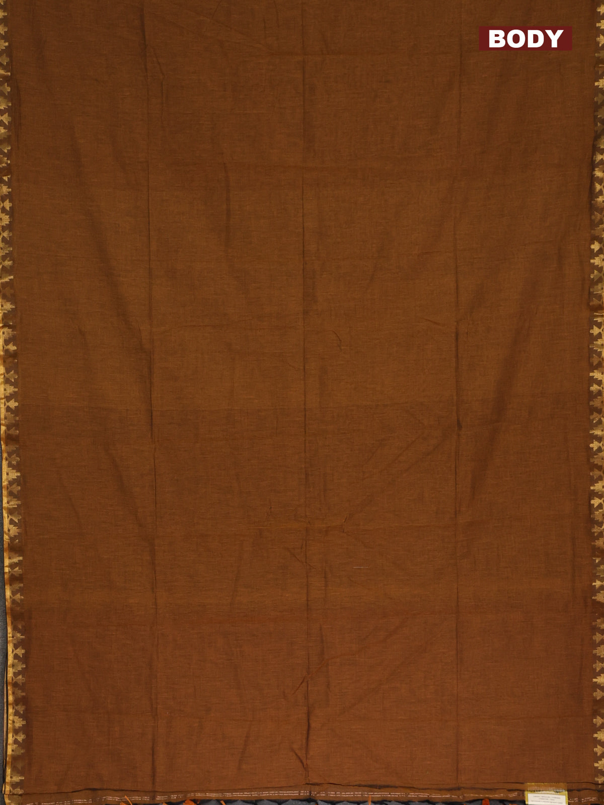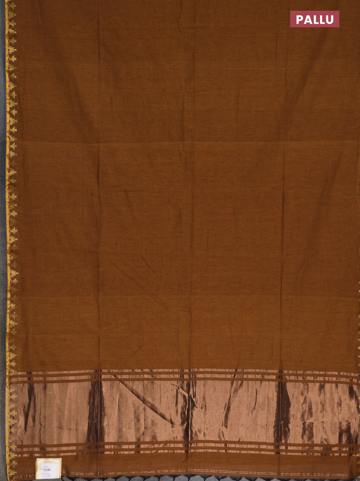 Bengal soft cotton saree mustard yellow and deep maroon with plain body and zari woven border