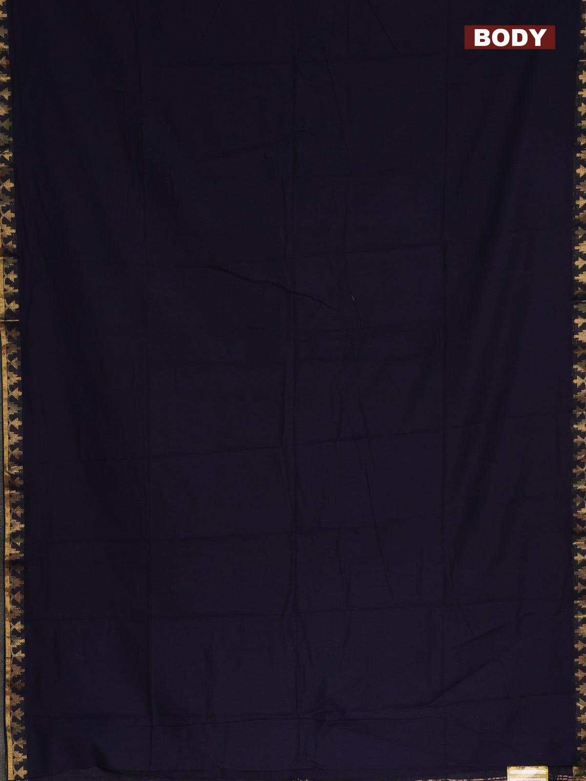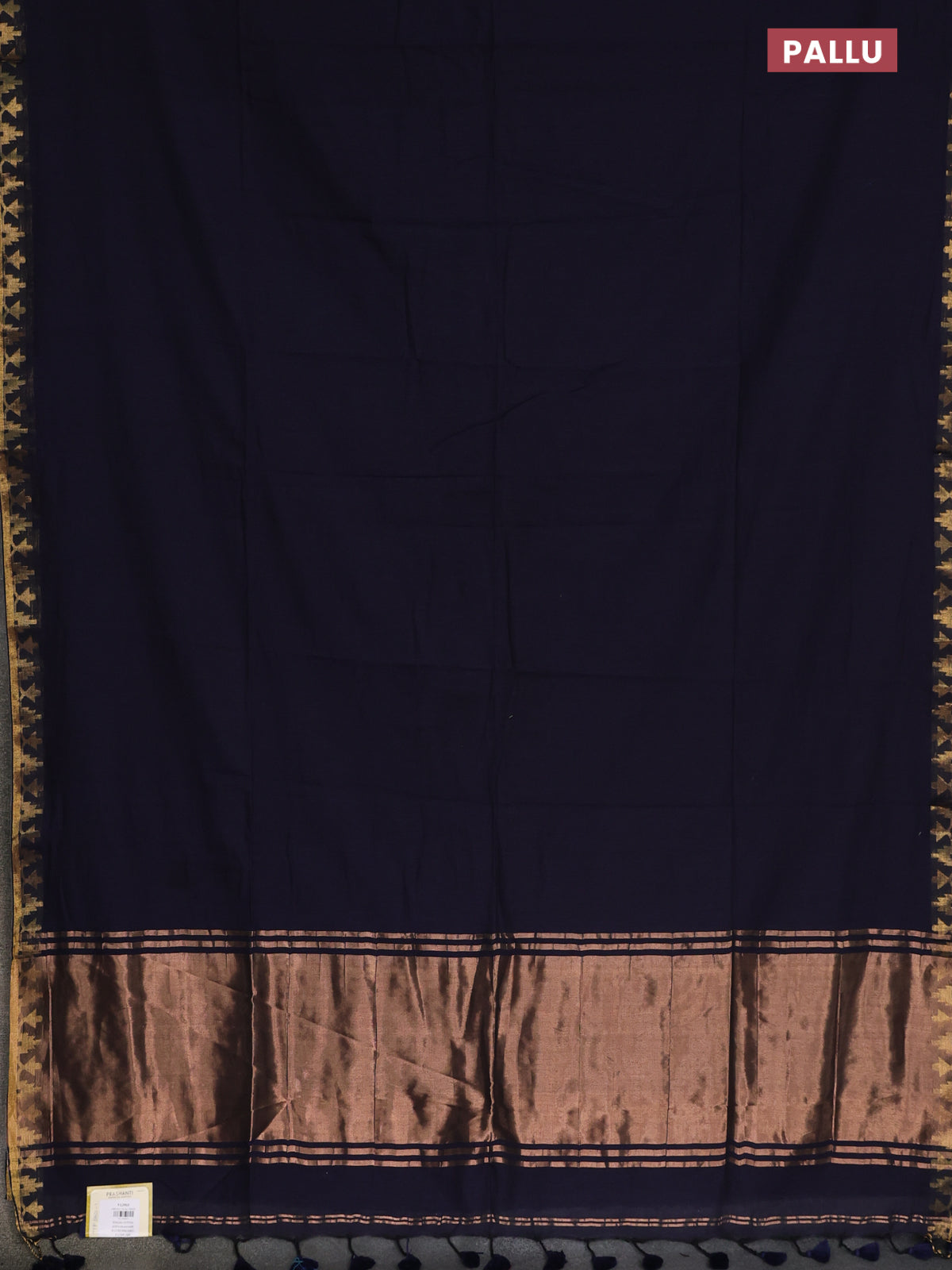 Bengal soft cotton saree navy blue and grey with plain body and zari woven border