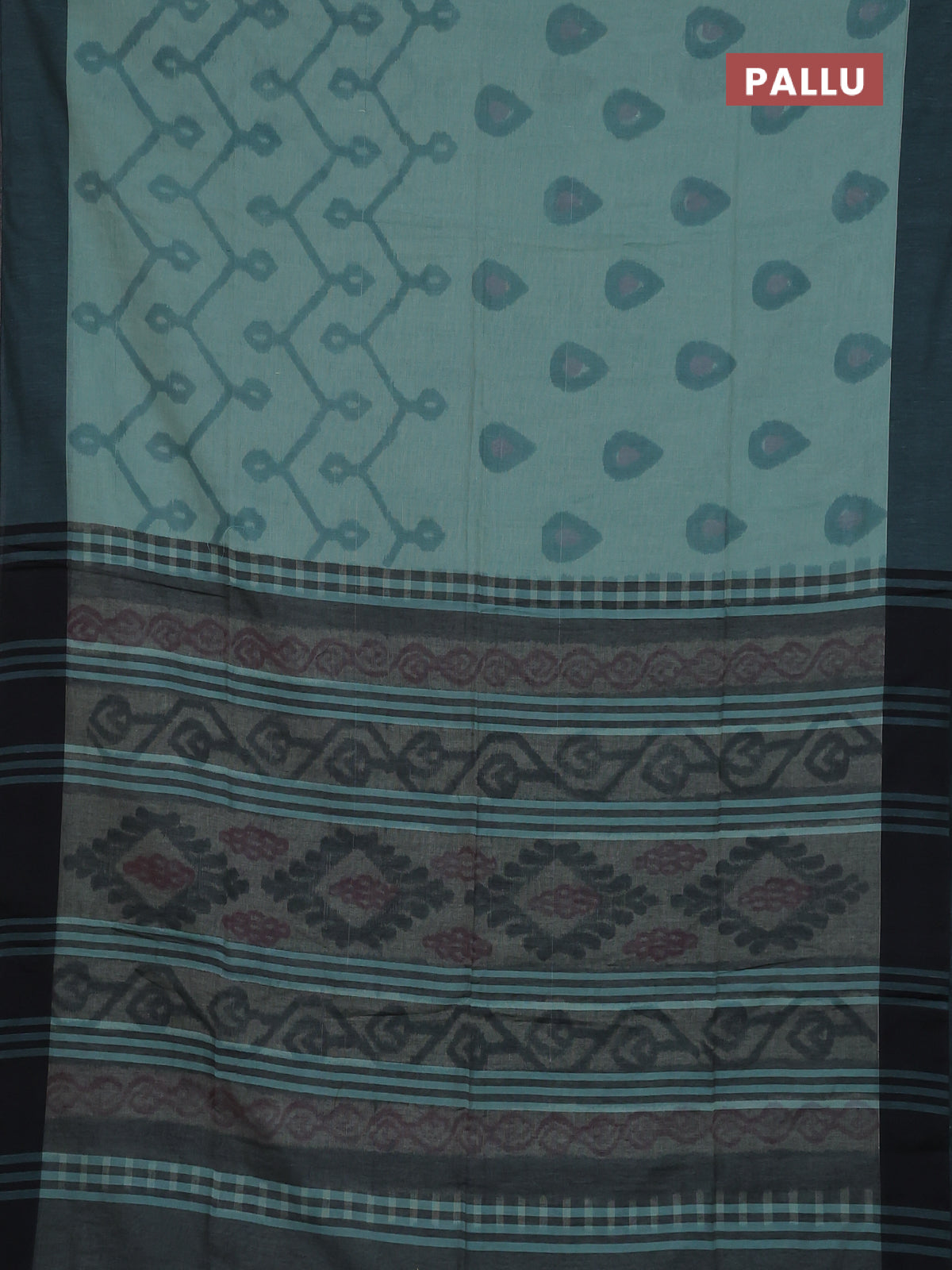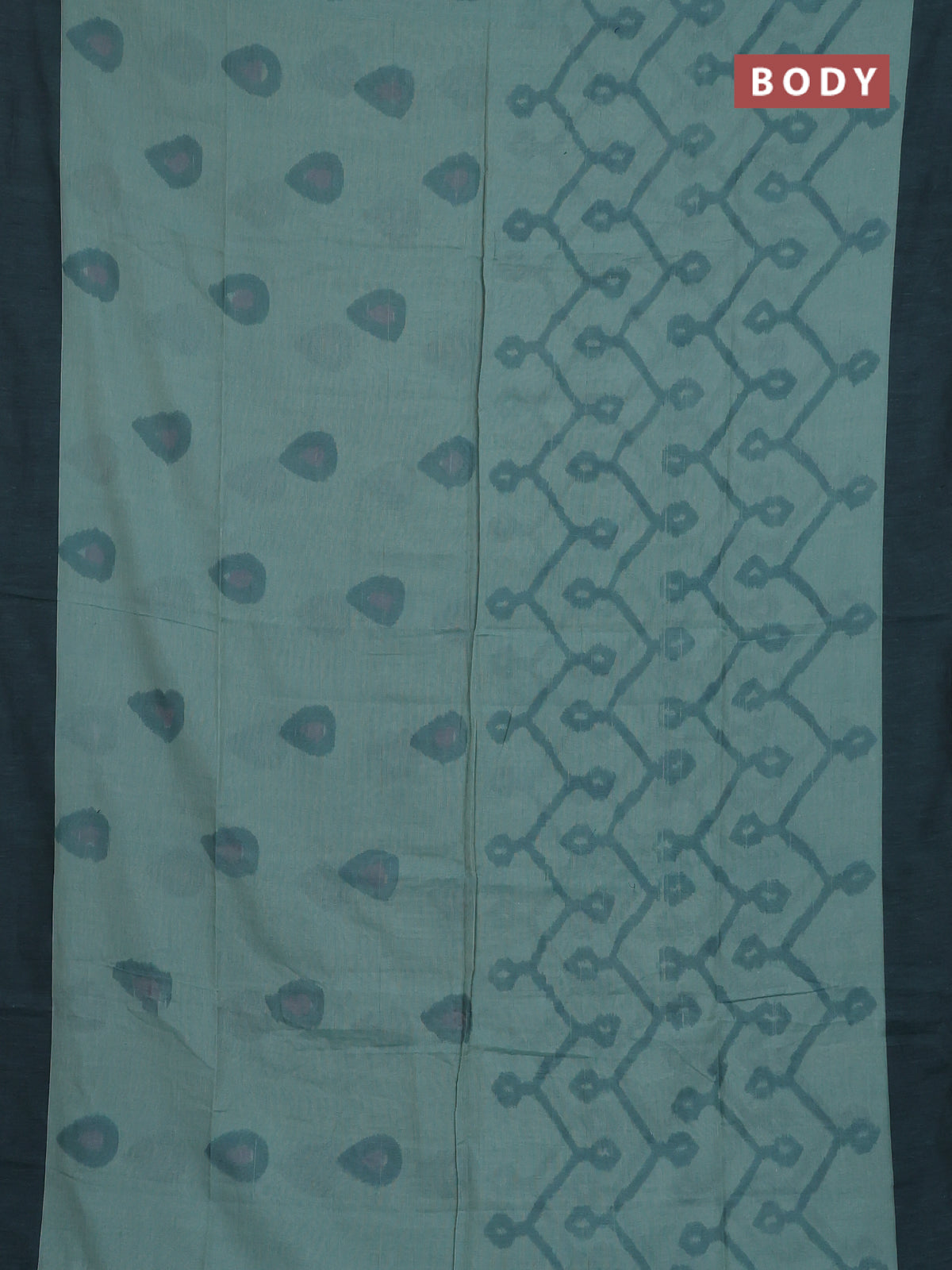 Bengal soft cotton saree pastel green and black with allover weaves and simple border