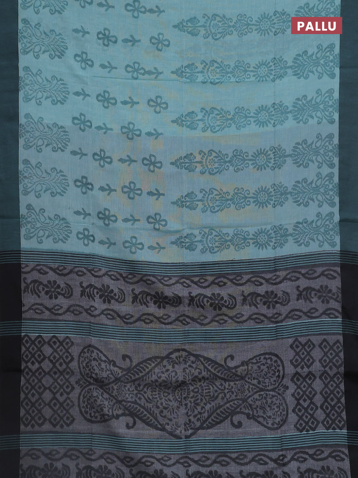 Bengal soft cotton saree pastel green and grey with allover weaves and simple border