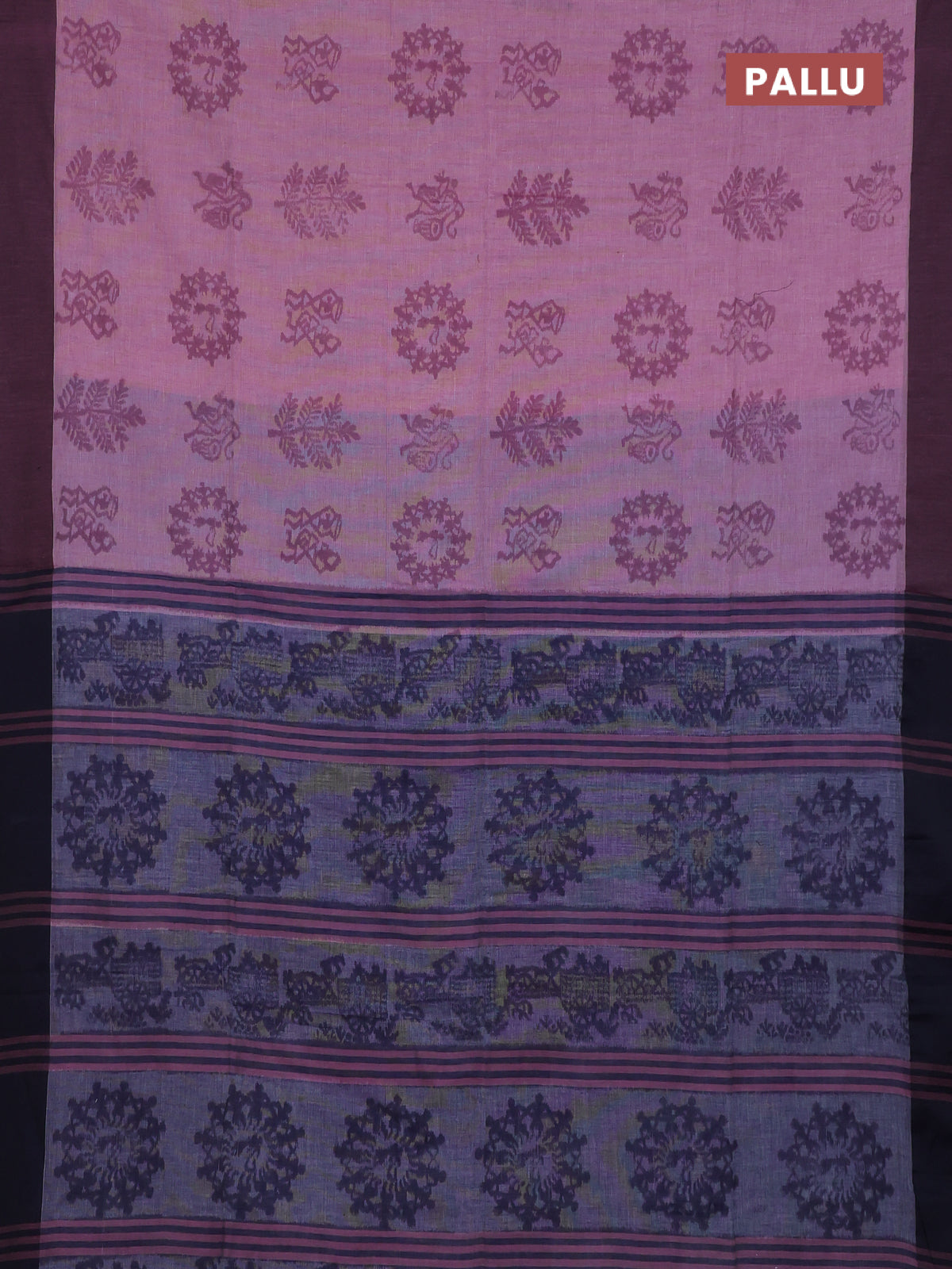 Bengal soft cotton saree pastel pink and navy blue with butta weaves and simple border