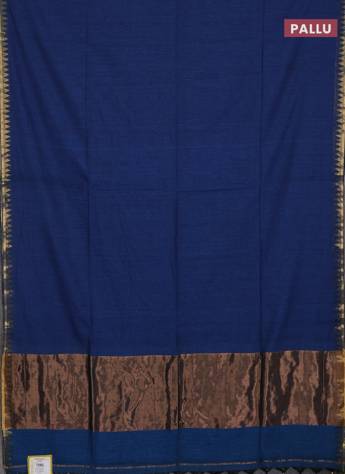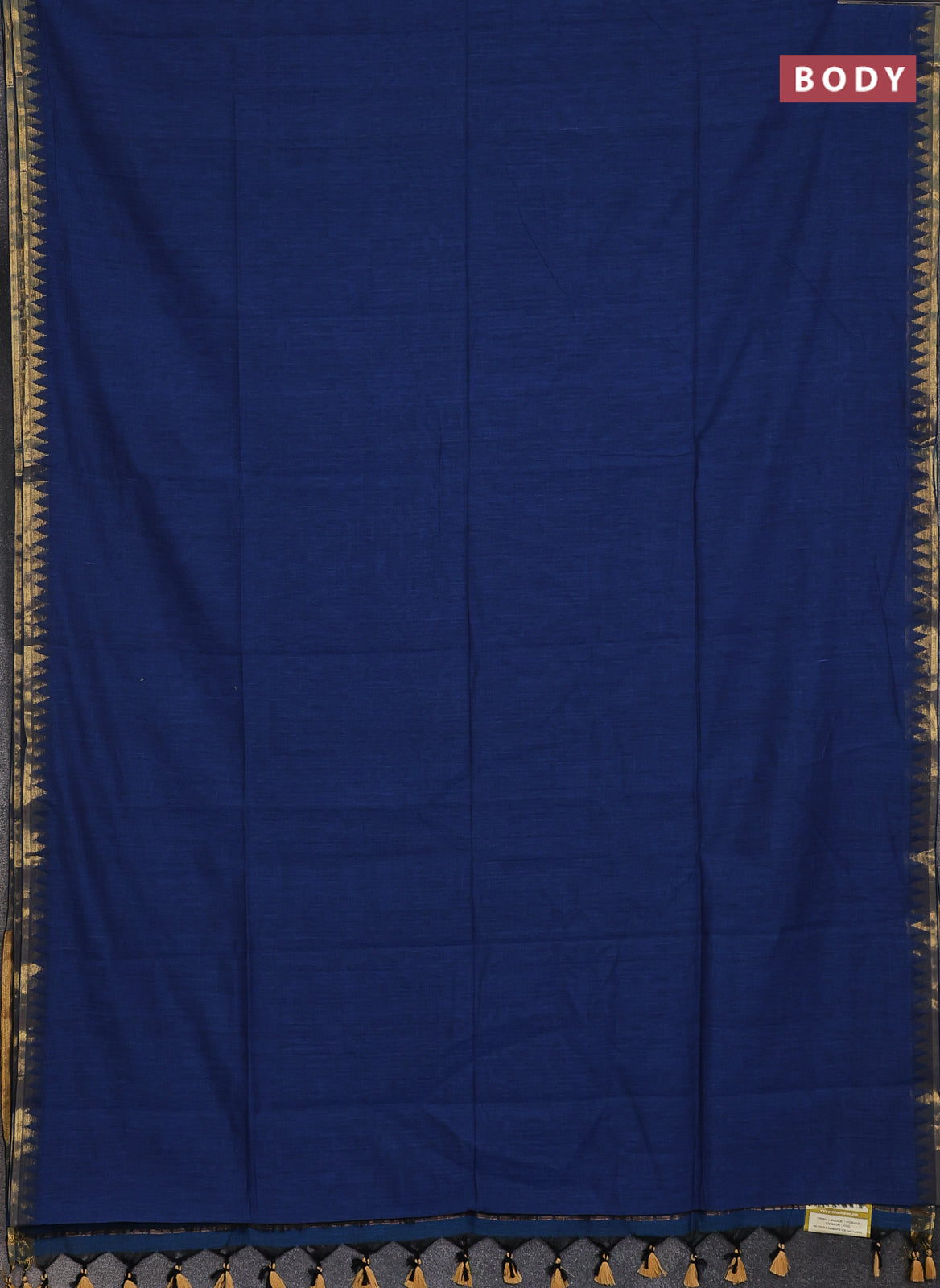 Bengal soft cotton saree peacock blue and maroon with plain body and zari woven border