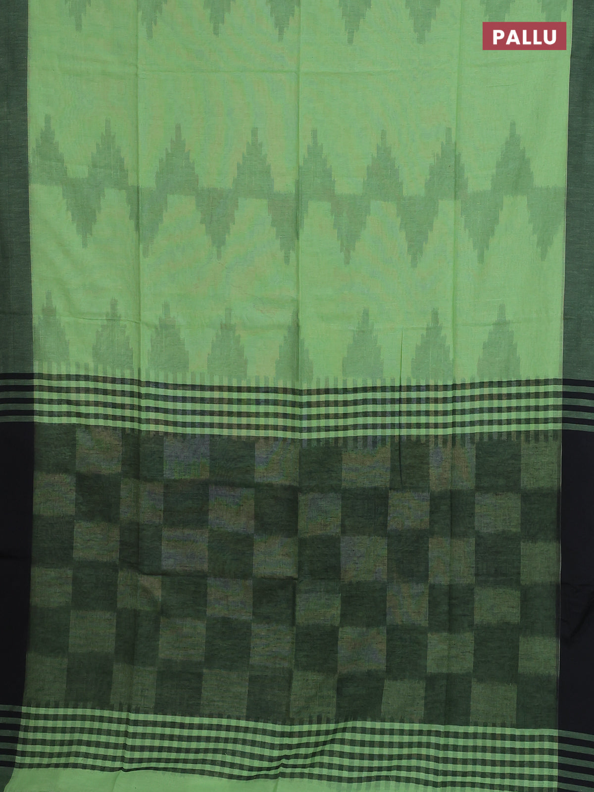 Bengal soft cotton saree pista green and black with allover weaves and simple border